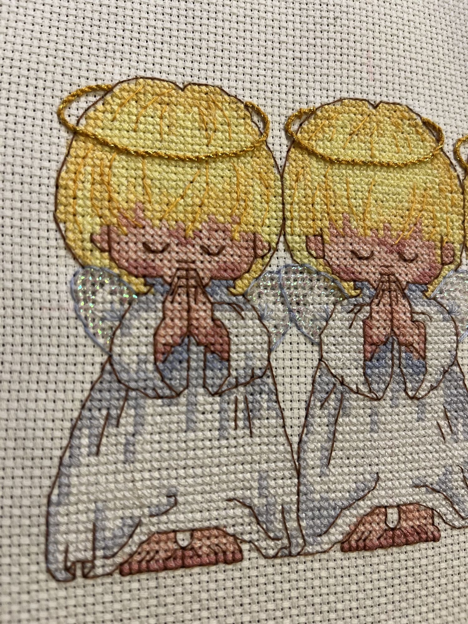 22 октября 2022 44 минуты назад, viola33 сказал(а): Хочу поделиться своими впечатлениями от работы с новыми металлизированными нитками Гамма. До этого мой первый и последний опыт работы с металликом Гамма был больше 10 лет назад в наборах Панна Денежное дерево и Денежная гора. Впечатления от тех ниток были ужасные. Сейчас я решила купить металлик Гамма для вышивки подбором Почти идеального. Там используется золотой металлик для нимбов и перламутровая ленточка для крыльев. Я решила заменить эту ленточку на белый перламутровый металлик, чтобы не заморачиваться с поиском этой ленты. По цвету мне понравился белый металлик Гамма больше, чем ДМС, т.к. у ДМС просто белый оттенок, а у Гаммы есть перламутровые переливы, мне показалось, он будет смотреться ближе к перламутровой ленточке из набора. Золотая ниточка мне не подошла по цвету, оказалась слишком светлой, мне нужен был более насыщенный желто-золотой оттенок. Но у меня в закромах нашлась такая нитка, купленная когда-то раньше. У нее другая этикетка, там нигде не написано, что это Гамма, но по ощущениям это все-таки она. Как раз перед этим, в предыдущем проекте мне пришлось очень много вышивать металликом Анкор, на нем образовывались петельки, особенно в месте перегиба в ушке иголки, он расслаивался. путался, приходилось отрезать очень короткие нитки, чтобы хоть как-то справиться с этими проблемами. Металлик от Гаммы состоит из 12 нитей, но они скручены по две, т.е. это 6 двойных ниточек. Поэтому я считала каждую двойную ниточку за одинарную нить. Приходится очень аккуратно отделять их, чтобы не вытянуть случайно одну нитку, а не две скрученные вместе. Это единственная трудность. Нитки отличные, можно брать нить любой длины, она не расслаивается, не путается, очень красиво блестит. Нитки оставили самое приятное впечатление. Крылышки я вышивала в 6 нитей (3 сложенные пополам двойные нити). Ниточка ложится ровно, крестики получаются аккуратненькие. Для нимба делала кординг вместе с х\б нитками мулине, цвет подошел очень хорошо. Маша, спасибо за обзор! У меня тоже плохие воспоминания о металлике от Гаммы,( купила в свое время, польстившись на красивые оттенки, но вышивать ими было трудно), а теперь обязательно попробую их новые нитки! viola33 сказал(а) спасибо Поделиться сообщением Ссылка на сообщение