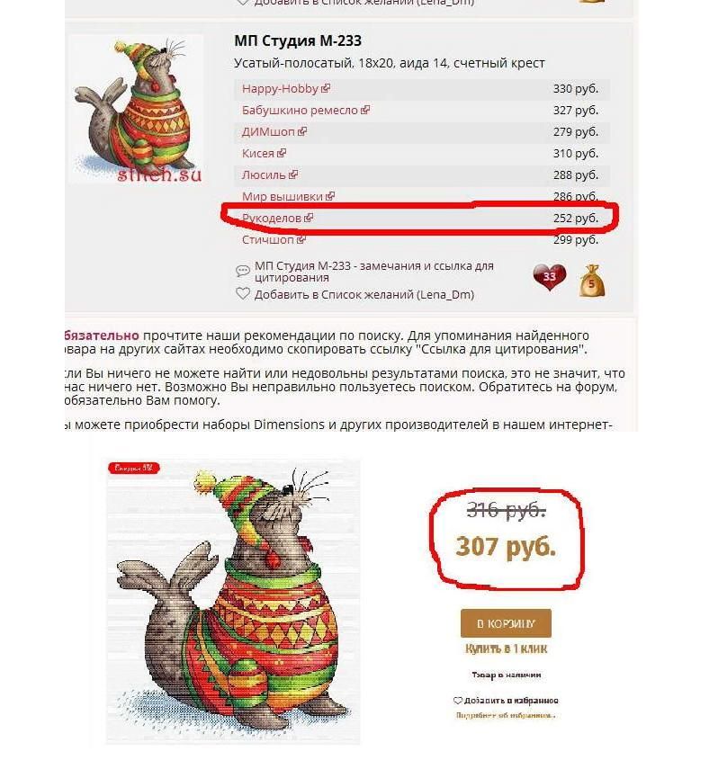 7 ноября 2020 Еще год назад писала о несоответствии цен в этой теме: 04.10.2019 в 15:00, Lena_Dm сказал(а): Решила попробовать сделать первый заказ в Рукоделове... Через поиск наборов на Стич.су "Усатый полосатый" стоит 252 рубля. Радостно перейдя по ссылке на сайт магазина, вижу, что набор со скидкой стоит уже 307 рублей. С остальными наборами от МП Студии, похоже, та же система (например, МП Студия НВ-698 "Уличный джаз" заявлен 516 рублей, а по факту - 627, и это уже со скидкой). Вопрос к представителю магазина: это вообще как?! Получила умилительный ответ: 04.10.2019 в 15:12, Rukodelov.Ru сказал(а): Добрый день! На сайте была акция по товарам "Жар-птица" и "МП. Студия", которая закончилась сегодня днем. Обработка выгрузки измененных цен с нашей стороны происходит с небольшой задержкой в 1,5-2 часа. А потом еще мнооого дней наблюдала, что цена так и не обновляется - ну пашут они, аки рабы на галерах, некогда информацию обновить! В итоге плюнула на этот магазин (ну вот такая я мерзко-принциапиальная зануда), и купила того же Усатого (ну и кроме него еще кучку хочушек, которые так же планировала в Рукоделове по несоответствующим обещаниям ценам) по еще более низкой цене в другом месте. lefkorosida, Pirani@, Ямана и 6 других сказали спасибо Поделиться сообщением Ссылка на сообщение