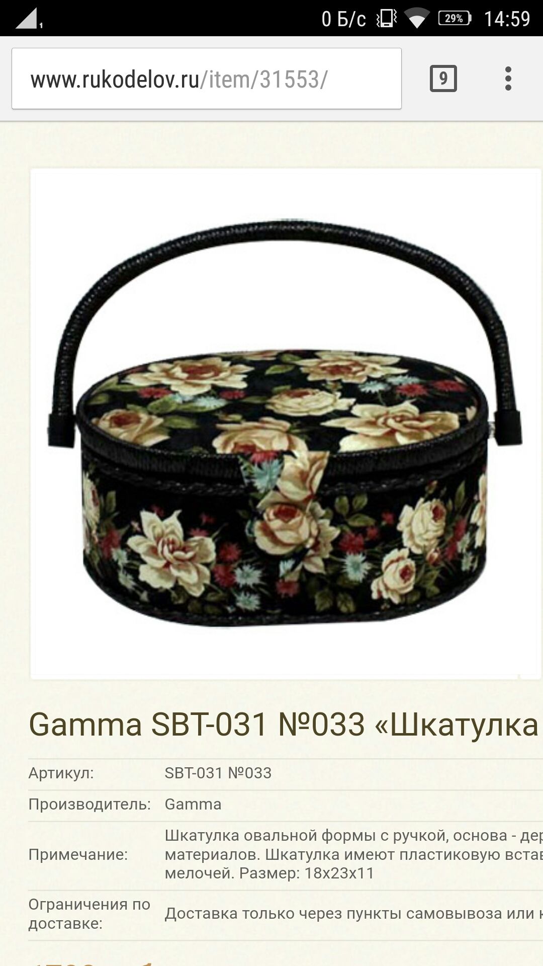 5 февраля 2017 Только положительные впечатления от вашего магазина! Забрала свой заказ. Доставка в пункт самовывоза в Подмосковье была уже через день. Уже оценила удобство Помощницы от Дубко. Один вопрос: Обнаружила пункт Боксберри в соседнем доме (п.Нахабино, ул. Чкалова). В вашем списке его нет. Вы не со всеми пунктами работаете? А то даже в ближайший Красногорск могу попасть только в выходной... Rukodelov.Ru, mandarin551 и teresa сказали спасибо Поделиться сообщением Ссылка на сообщение