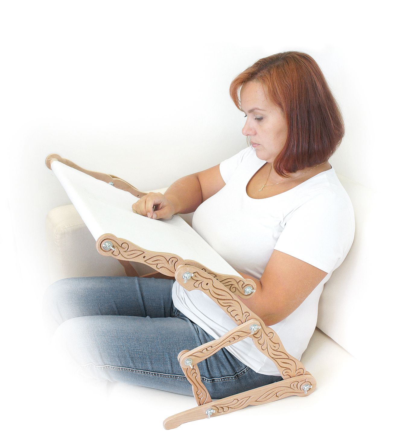 11 января 2019 22 часа назад, Doce4ka сказал: Rukodelov.Ru, скажите пожалуйста. Сейчас отличная акция на станки Дубко. Диванный станок? Какие у него габариты? Грубо говоря ноги крест накрест я под ним смогу сложить? И вышивать полулежа? Или за ним только сидеть можно? Какой он по высоте? Понимаю, что эту тряпочку может раздобыть в интернете, но мне кажется ваш магазин быстрее даст мне ответ на мой вопрос. Здравтствуйте! Прошу прощения за задержку с ответом! Почему-то не приходили уведомления. Я думаю, что вполне возможно комфортно разместиться нога на ногу, работая за этим станком. И немного подробностей: Диванный станок для вышивания крестом и бисером "Рукодельницы". Станок сделан из бука, что позволяет сделать конструкцию станка очень легкой, но при этом и прочной. А устойчивость достигается за счет конструктивных особенностей - станок не "играет", не складывается. Все детали станка имеют фигурный контур и резьбу по дереву в русском стиле. Такой станок будет долгие годы радовать глаз и прекрасно впишется в любой интерьер. Имеется масса возможных регулировок для подстройки под любые потребности. Размер рамки регулируется от 53х15 см до 53х33 см. Расстояние между ножками станка ~ 60 см. При необходимости станок можно сложить не снимая вышивку и убрать под шкаф или за диван. Высота станка в сложенном состоянии ~ 10 см. Крепление канвы выполняется деревянными крепками. Вышивая за станком, Вы чувствуете себя очень комфортно, не устает спина, не затекают плечи. Можно устроиться удобно перед телевизором, на диване или лавочке. Sky026, JanaTX, Aleksacha и 2 других сказали спасибо Поделиться сообщением Ссылка на сообщение