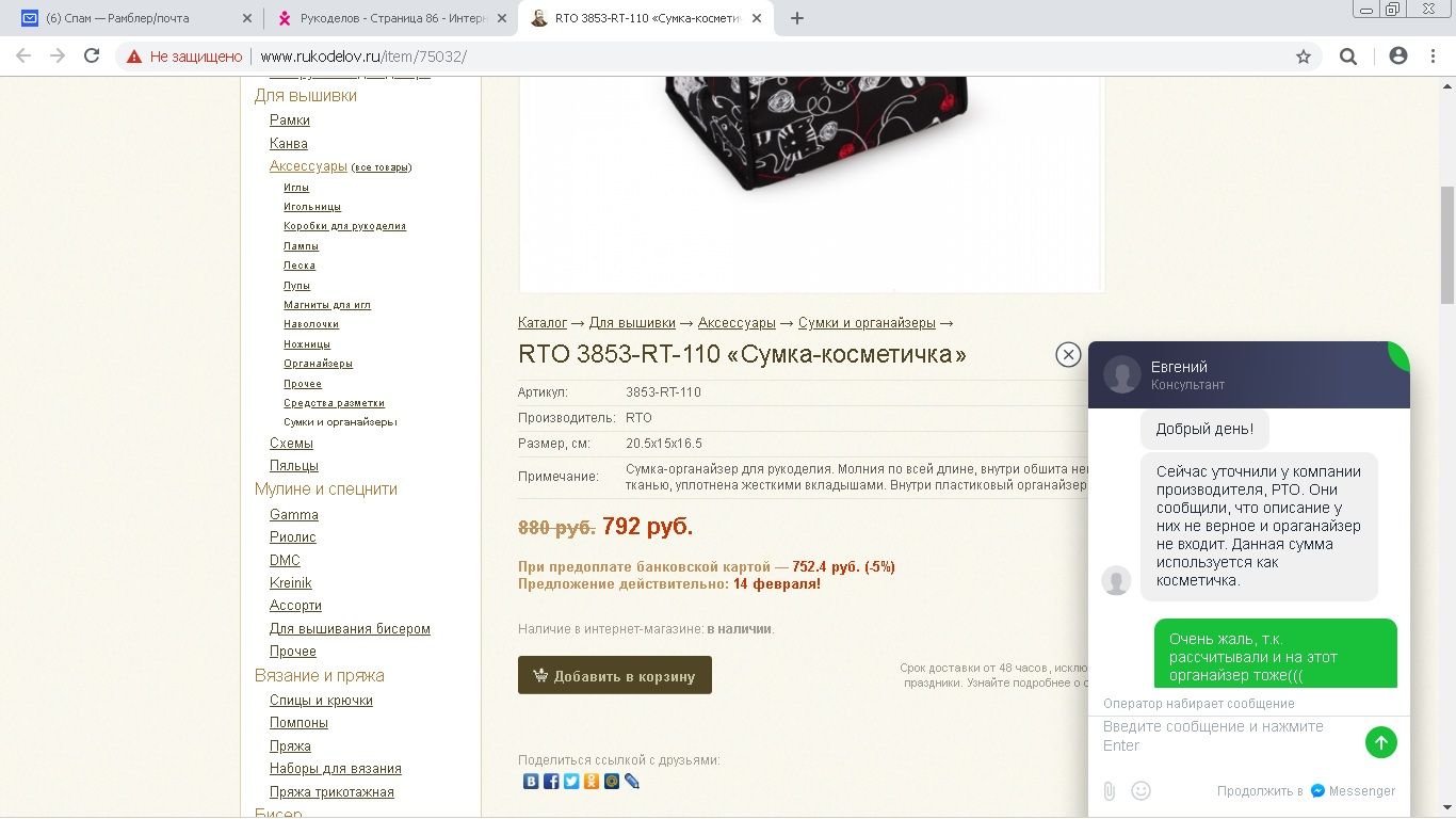 1 марта 2019 Довольно часто делаю заказы в Рукоделове, чаще чем в других магазинах. В целом, магазином довольна, отправляют заказы, как правило, быстро. За все время с ними было только два казуса: - делала заказ, находясь заграницей, в комментариях к заказу попросила не перезванивать, тк нахожусь в роуминге (до этого кстати всего один раз звонили подтверждали заказ, но на всякий случай решила им написать), заказ подтверждаю и через несколько рабочих дней буду в городе и буду готова его получить (как раз заказ бы успел дойти, если бы они его отправили). Однако на след.день они мне звонили, звонок я пропустила и перезванивать не стала, но заказ они так и не отправили. Вернувшись домой, обнаружила, что заказ даже не собирается, поэтому написала им, что от заказа отказываюсь и сделала заказ в другом месте; - совсем недавно делала заказ и мне перезванивала для подтверждения девушка, которая, похоже, очень плохо знала русский язык - с трудом зачитывала слова, делая ошибки в ударениях, несколько раз пытаясь зачитать названия наборов, хотя все было на русском и никаких сложных слов там не было )).. все это было как-то ну очень долго и странно.. честно говоря, вообще не понимаю, зачем нужно звонить что-то подтверждать, если клиент делает не первый заказ и указывает в заказе всю необходимую информацию.. Vag222, Dasika, JanaTX и 4 других сказали спасибо Поделиться сообщением Ссылка на сообщение