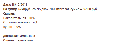 23 апреля 2019 Уже полгода ничего не заказывала в Рукоделове. Хотя, раньше регулярно 1-2 раза в месяц делала там покупки в течении 2-х лет. Последний мой заказ Опишу, что меня лично сейчас расстраивает. Этот магазин был в приоритете перед другими магазинами регулярными распродажами, накопительными и разовыми скидками, плюс скидочными купонами. И всё это суммировалось и оплачивалось наличкой. Благодаря этому, окончательная цена на товар была одной из самых низких, даже ниже, чем в известных мне оптовых магазинах. Сейчас не нахожу для себя выгодной цены на желаемые товары, потому что больше накопительная и разовая скидки не учитываются на товары из распродаж, купоны больше не рассылают, а цены на товары, если посмотреть здесь на сайте, являются одними из самых высоких в сравнении с другими магазинами. Представитель от магазина на этом сайте после 30 января больше не общается с покупателями, хотя, возможно, просматривают сообщения. Радует, пока, только то, что обновили сайт магазина, учли все пожелания. Сайт стал удобнее. olyanitka, Миссис Мыштон, -Solovey- и 8 других сказали спасибо Поделиться сообщением Ссылка на сообщение