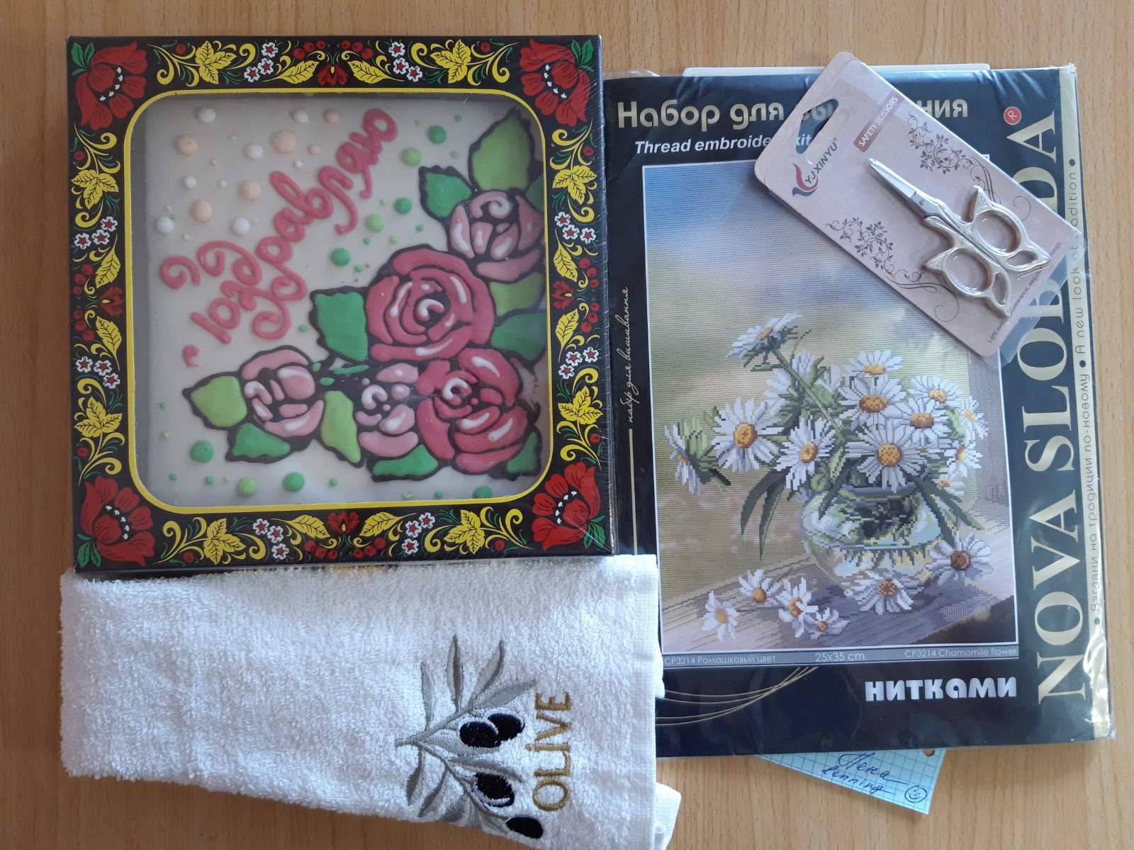 5 марта 2021 Ой, девочки, пока там вас на работе поздравляют мужчины, мой день сделала Лена @lenning. Вчера Леночка написала, что ее маленький подарок уже на подходе к Орску, я в приложении увидела, что этот маленький подарок весит больше килограмма, на что Лена ответила, что основной вес посылки - это открытка! Я всю голову сломала... И вот подарок у меня в руках! Так приятно! Показываю содержимое. Оказывается, вместо открытки очень вкусный Покровский пряник. Набор NS с моими любимыми ромашками, милое полотенце и ножнички, таких в моей коллекции еще нет! Все собираюсь вам ее показать. Стоило потерять одни, как внезапно собралась целая коллекция. А какая красивая тонированная канва в наборе! Посмотрите. Лена, дружочек, спасибо огромное за подарки и твое теплое письмо! На пряник приглашу маму и сестру. nata-g, Tata44, Хозяйка смешных зверей и 18 других сказали спасибо Поделиться сообщением Ссылка на сообщение