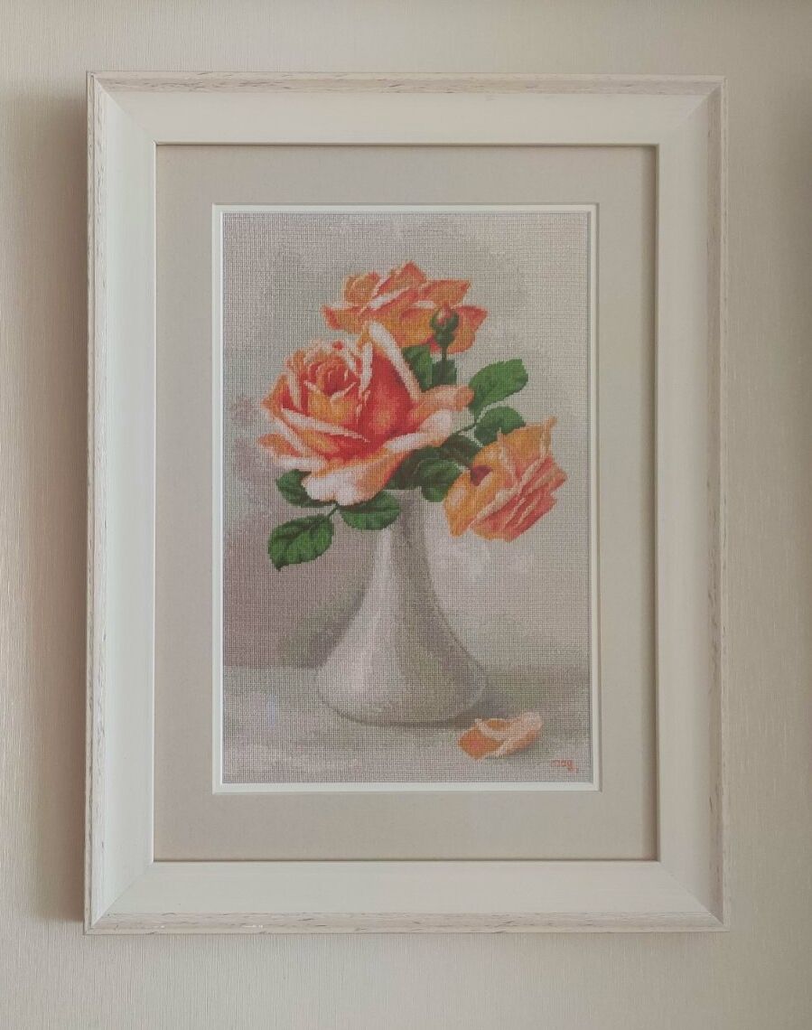 11 апреля 2021 4 часа назад, mag сказал(а): Мои продвижения по тихой гавани от Heritage. Делаю из квадрата круг, оформлять буду в круглую рамку. Вышиваю подбором нитками Гамма на Линде 27. Марина, как классно ты кружок вычерчиваешь! На Линде 27, наверное, цвета нежнее будут, чем на 28 каунте. Скоро лодочки появятся! 5 часов назад, mag сказал(а): А ещё, я все-таки переодела свои оранжевые розы. Так я их представляла изначально. Ну вот, сделала ещё краше то, что и так было очень красиво! Багет очень классный! Но у тебя остались рама и паспарту, очень гармонирующие друг с другом. Что будет с ними? махно, mag, Olechka19 и 6 других сказали спасибо Поделиться сообщением Ссылка на сообщение