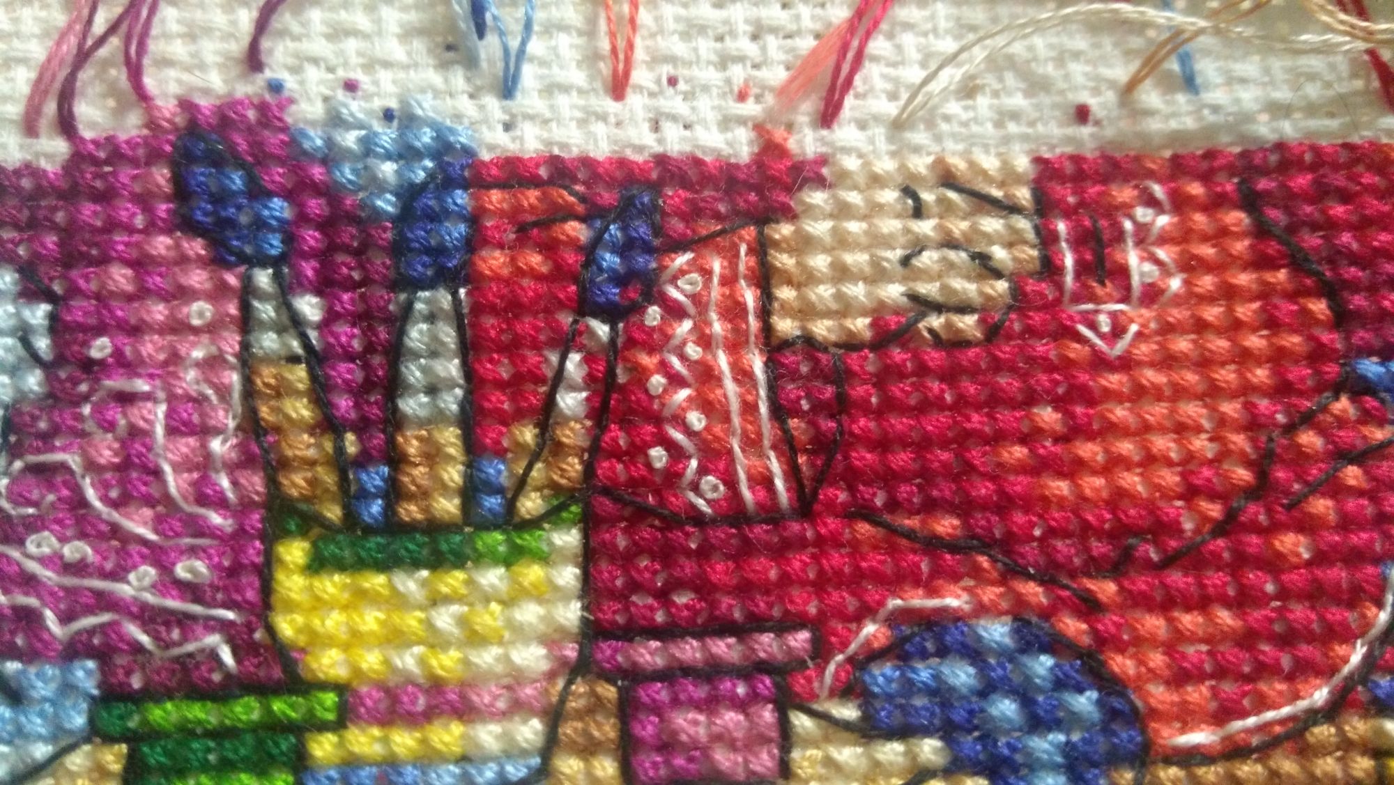 11 июля 2017 Здратути дорогие))) Давно в кустах сижу, принесла наконец-то свой скромный отчетик) 1. Зеленим гаечку МП Cтудия М-095, Подготовка к празднику Впечатления от набора у меня остались прекрасные. Схема конечно мелковата, плохо видно бэк. Когда делала сверялась с обложкой, ну и очень подходит картинка-обложка с нашего любимого форума))) вот она На ней прекрасно просматривается где и как идет бэк )) Фрузелки у меня получились кривоватые, как я не старалась) ну и ладно) попробую еще при глажке поправить В общем за такую копеечную цену я даже не ожидала такого результата, купила просто потому, что очень понравилась картинка 2. RTO M515, Валентинка К носочкам малышу нарисовалась пухлая попа и даже легкие воздушные крылышки Вышивать одно удовольствие, цветов мало, схема простая, утащила этот процесс на работу 3. Решила я все-таки быть последовательной и вместо разведения новых процессов, хотя терпеть нет сил))), поработаю над заброшенными. Нашла начатый Дим, напомню: Dimensions 08852, Sled Dogs было всего ничего стало тоже не ахти))) ну в общем у меня опять зима))) Больше пока ничего интересного) Борюсь с острым приступом хомякоза, терплю, рассматриваю ваши работы ))) Всем тепла! Catopuma, Mizeri, Камма80 и 30 других сказали спасибо Поделиться сообщением Ссылка на сообщение