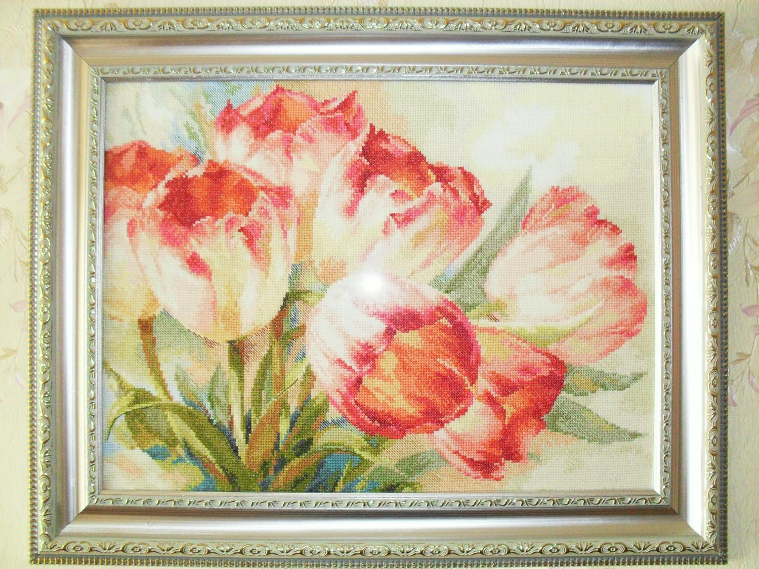 17 марта 2014 Поменяла одежку у алисовских тюльпанов. Золото поменяла на серебро, теперь тюльпаны смотрятся на мой взгляд с этим багетом нежнее, нет резкой границы и не так бросается в глаза обрезанный тюльпан в левом углу. Было стало багет серебро с золотым вензелем meledi2006, Melawen и Лена1973 сказали спасибо Поделиться сообщением Ссылка на сообщение