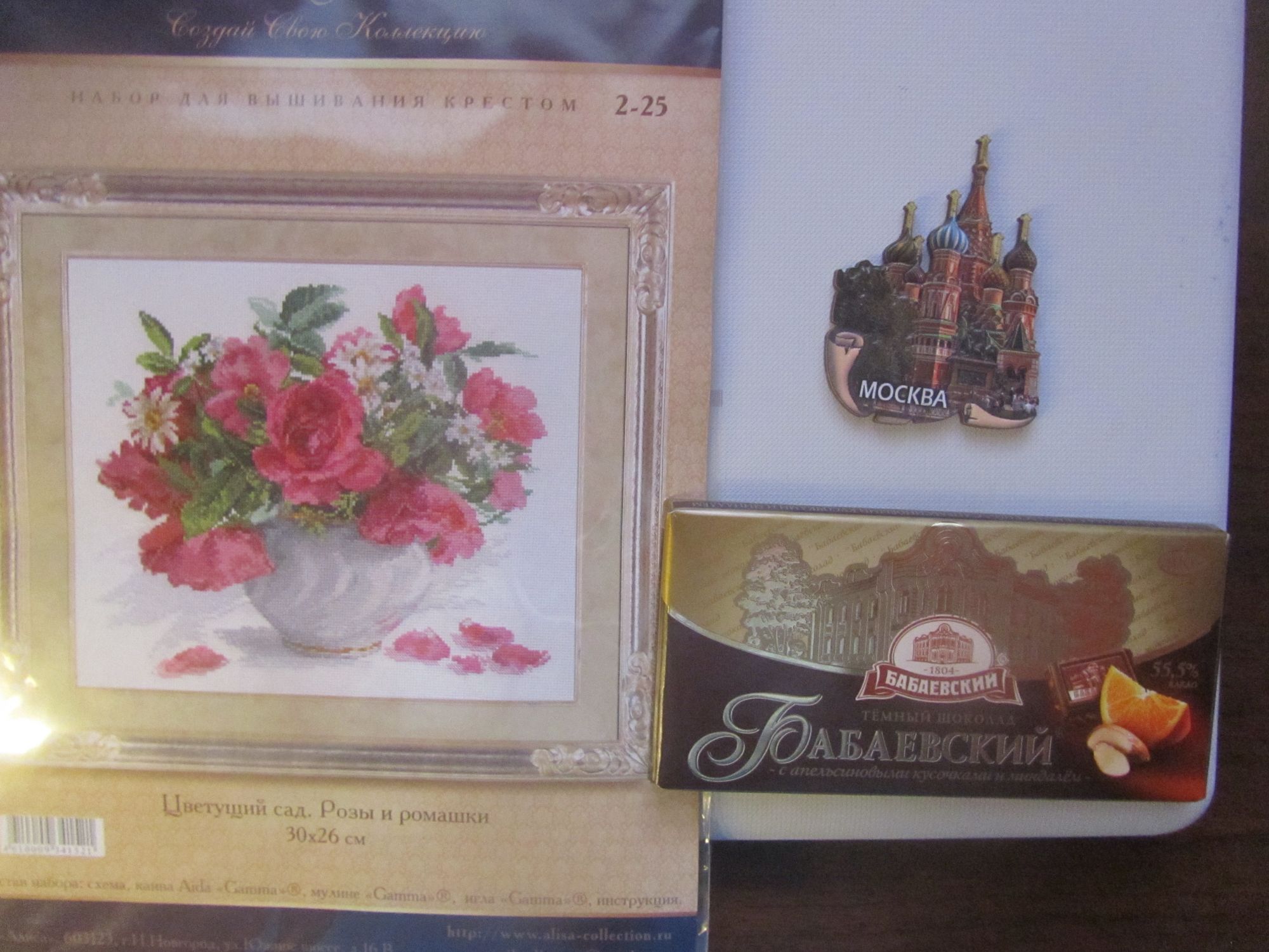 20 ноября 2018 Всем привет! Я сегодня получила от Оли - Олюшка посылочку со схемами и образцами ниточек, а кое где и с родной от набора канвой, радовалась как ребенок. Просила Шато, а получила еще богатство в придачу. Это схемы а это подарок набор от Алисы с моими любимыми розами Как ни странно магнитов у меня много, а вот МОСКВА появился первый, занял почетное место на холодильнике. Ну и раз я уже тут, то покажу продвижение по "Античные цветы" Было + стало остался один лист схемы. Всем отличного настроения. ОльгаВл, Пикусёнок, Юнона1960 и 25 других сказали спасибо Поделиться сообщением Ссылка на сообщение