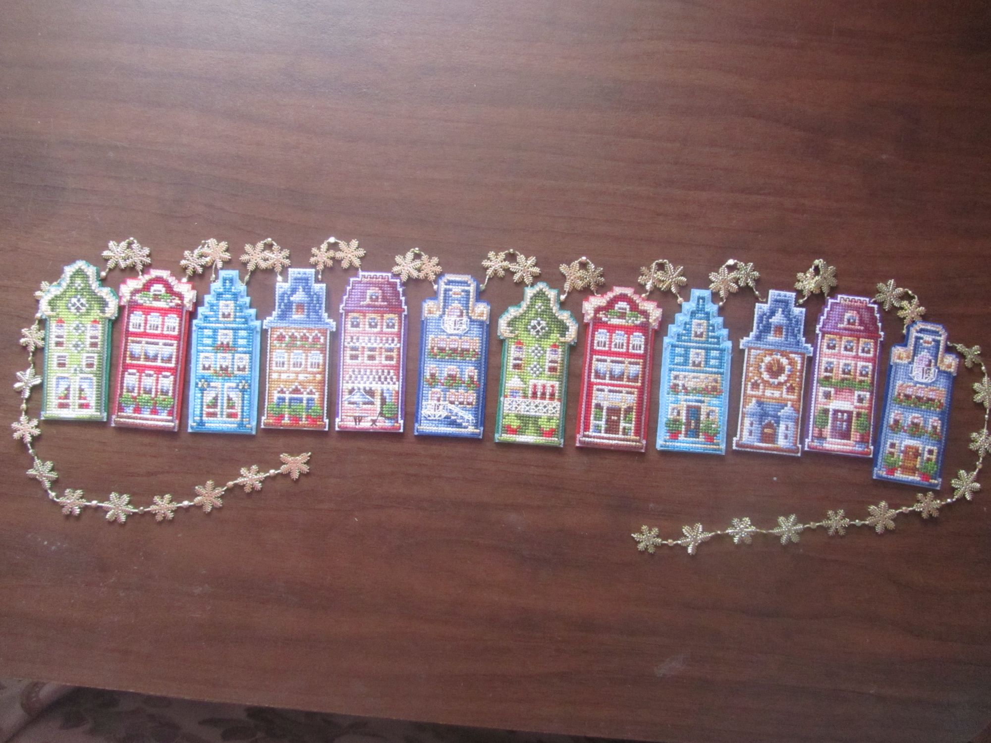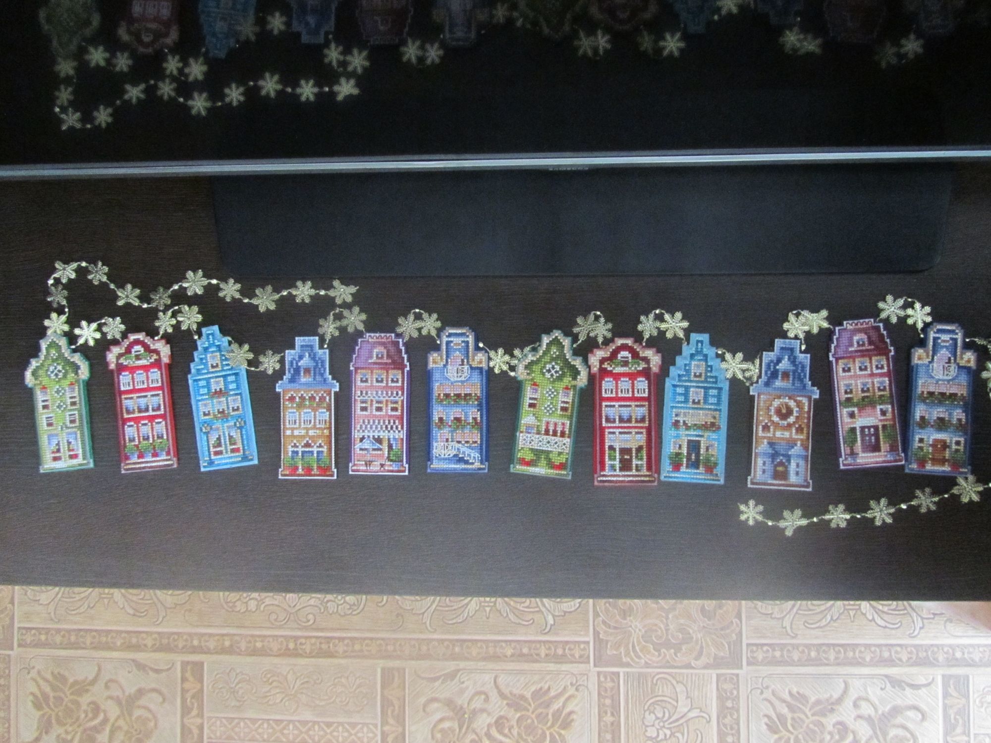 15 мая 2019 Всем привет! Я вчера завершила таки свои домики от ССР и собрала их в гирлянду и что бы не ждать отчета решила вам сразу все показать и рассказать. Последний домик было + + + итог казус в распечатке значков, там где надо делать бэк перепутаны обозначения - ставят номер 3, а пишут цвет белый который на плашке под номером 1 и так переврали все цвета, хорошо что цвета ниток написаны, а то бы сделала бэк указанными номерами. Гирлянду собрала на готовую золотую со снежинками. Задник из фетра, подбирала фетр под цвет домика, приклеивала на прозрачный клей момент здесь половина домиков. И вот они во всей красе Пришлось внучку попросить поучаствовать в фото-сессии, так как домики упрямо не вмещались в кадр в развернутом виде.. Итог мне понравился, но последние домики вышивались без интереса, хоть и цветовая гамма и фасад разные, но все равно однообразие. Всем отличного настроения. Всего самого доброго. Сибирская Кошка, Юнона1960, Путешественница и 30 других сказали спасибо Поделиться сообщением Ссылка на сообщение