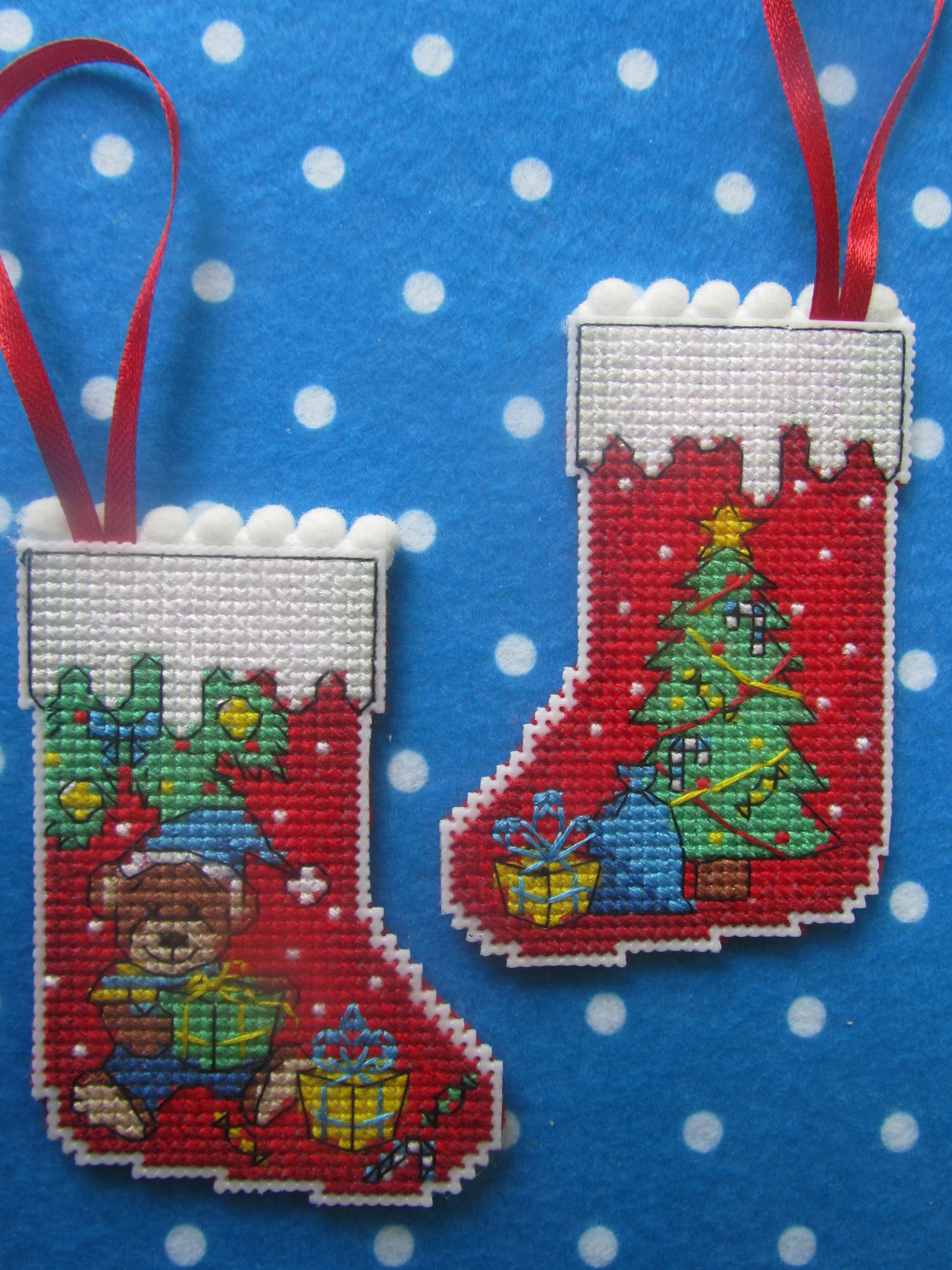 10 июля 2019 Всем пламенный привет! Я тут прибежала домой на постирушку и пока машина стирает решила показать вам еще два завершенных набора с новогодними игрушками. Набор от Овен "Новогодний сапожок" 11 цв.мулине 4 цв.бэкстича, крест в 2 нити.пластиковая канва. Соединять не стала, получилось два сапожка. результат сверху украсила тесьмой с пумпошками, сзади приклеила фетр. Набор Панна "Елочные шарики" в набор входят 2 чипборда, 16 цв.мулине, 2 смеш., 2 бэк. крест в 2 нити. результат по лицевой стороне приклеила тесьму закрыв край чипборда, сзади фетр. Всем пока, Всем отличного настроения, а я когда появлюсь покажу вам продолжение подготовки к н.г. татьяна0674, ОльгаТольна, ЛюдмилаЕр и 30 других сказали спасибо Поделиться сообщением Ссылка на сообщение