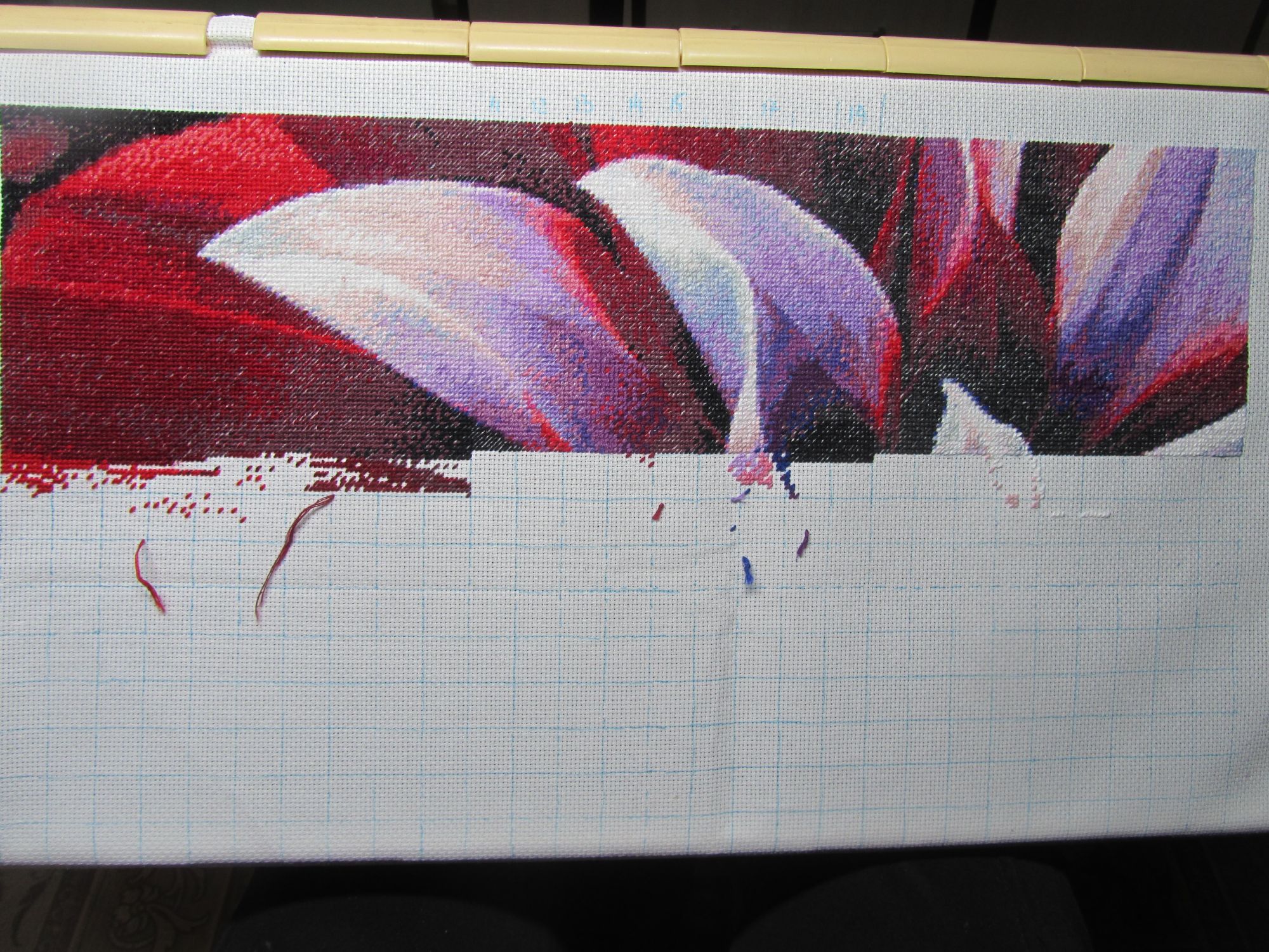 15 апреля 2020 Всех приветствую заглянувших в гости. Продолжаем сидеть дома и наблюдать что происходит за окном, у нас вчера было вот так Самоизоляция проходит у меня в гордом одиночестве, казалось бы сиди да вышивай непрерывно, но оказалось, когда есть такая возможность, то воспользоваться ей хочется все меньше и меньше, ну конечно же продвижения есть, но не такие какие бы хотелось. Покровка продвинулась хорошо только за счет того что огромный кусок вышивается полукрестом и минимум бэка. Было + стало нравится она мне, аж до дрожи в руках. Георгин было + сейчас застряла в самой мешанине,это самый трудный участок, дойду до края и останется вниз спуститься на 70 клеток ( я выше писала что 700кр., но это была фантоошибка математика ) пока решила от него отдохнуть, думаю или юбку продолжить, или дом продолжать строить, или что-то новое замутить . Георгин со станка убрала и стоит он у меня пустой в ожидании моего решения. Вышиваю еще нов. шар от МПСтудия "Морозная рябина", мучаю его уже неделю и только одну половину завершила, покажу когда будет полностью завершен. Всем желаю не болеть, мужественно просидеть дома самоизоляцию. Хельга, ОльгаВл, Muskat и 27 других сказали спасибо Поделиться сообщением Ссылка на сообщение