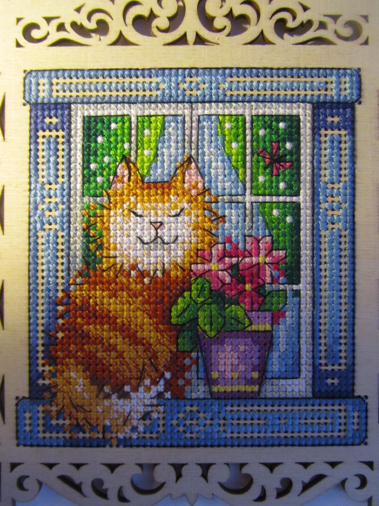 16 сентября 2021 Всем здравствуйте! Будем зеленить гаечку " Под весенним солнышком" от МПСтудия Щепка. Понравилось все кроме вышивки в три нити, с трудом проходила игла. Думаю в две нити ничего бы не просвечивало, если решу еще что-то подобное купить, то буду вышивать в две нити. От себя внесла изменения в оформлении поставив это оконце на подставку, украсила кошечку сердечным медальоном и дала ей имя Мисс Далида которое модно прочитать над оконцем. Было + добавила бэк + с бэком добавила бисер поставила на подставку сзади Мисс Далида с сердечком на шее рада вас приветствовать. На этом завершаю у меня часы показывают 02.27 часов Всем всего хорошего, а мне доброй ночи . svetlana62, maui, Дикая белочка и 16 других сказали спасибо Поделиться сообщением Ссылка на сообщение