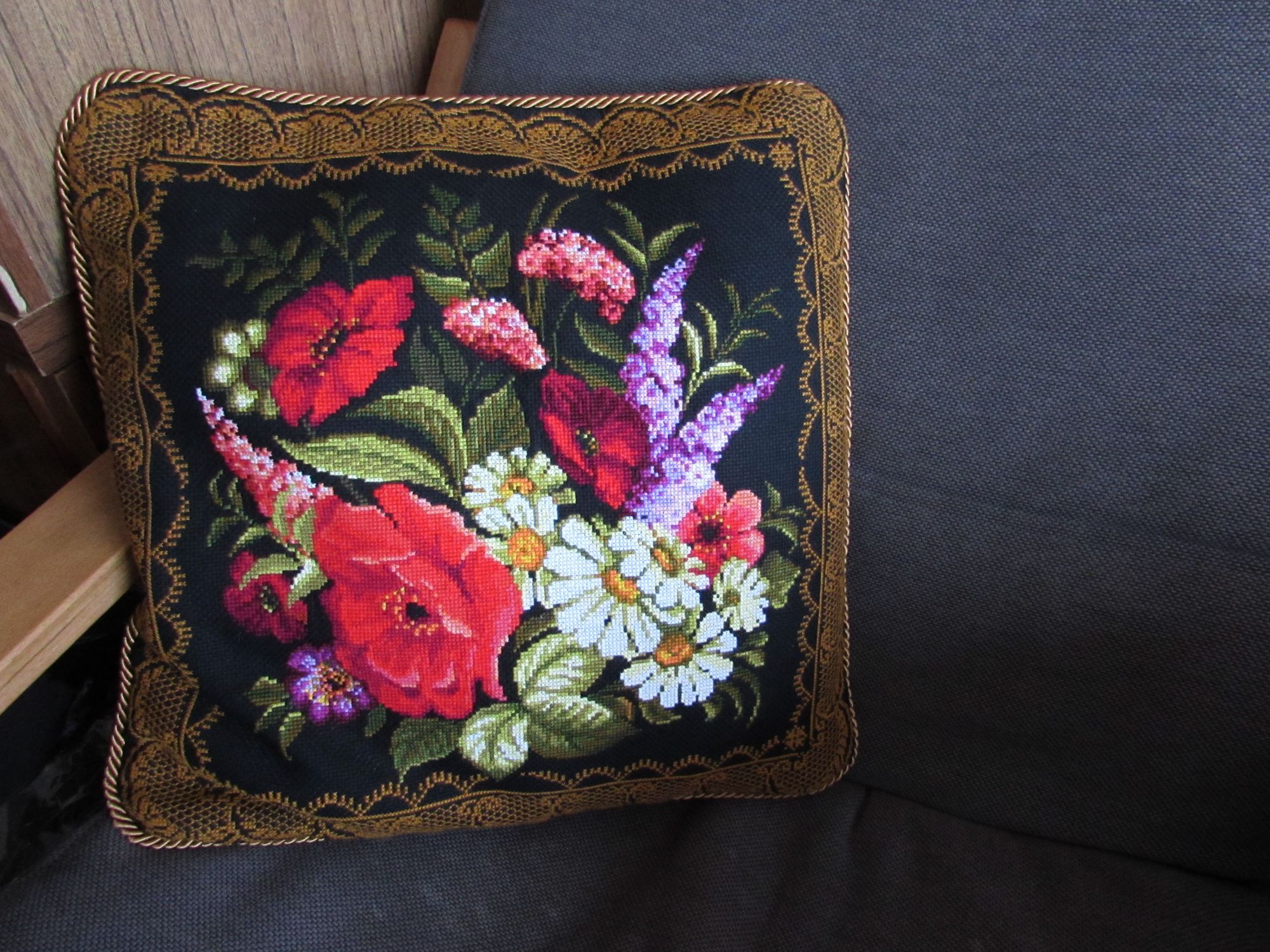 5 апреля 2018 Наконец-то я сшила наволочку! Крестная Фея из журнала «Формула Рукоделия» (ноябрь 2013) , схема Джоан Элиотт. Прекрасная схема, замечательный подбор цветов, очень приятно было вышивать. Подушка сшита для племянницы, комната которой оформлена в фиолетовых тонах. Я долго думала, делать ли надпись, и на каком языке, но в результате заполнила пустое пространство золотыми звездочками и успокоилась. О том, что сбыча мечт начинается с одного-единственного желания, я ей на словах скажу. Kamis, solnishko-ym, ЮшИрина и 7 других сказали спасибо Поделиться сообщением Ссылка на сообщение