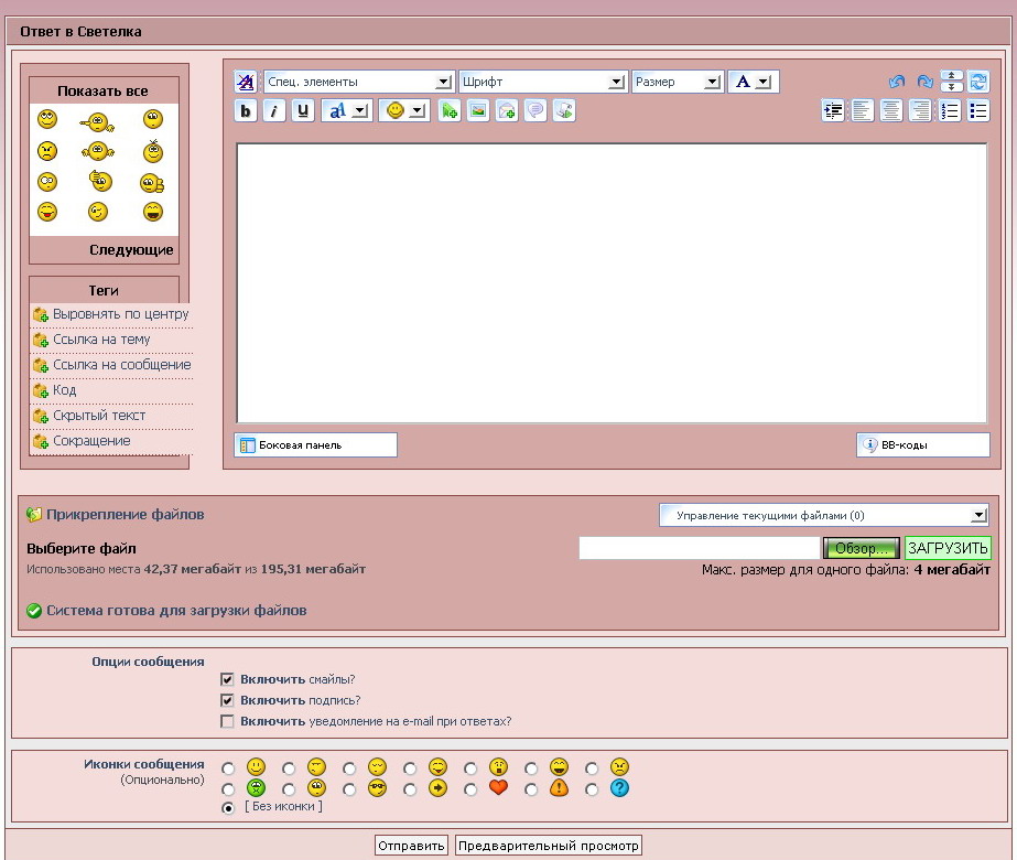 14 мая 2010 ...(правда пока не разобралась, есть ли на форуме подписка на тему, чтобы оперативно узнавать о заданных вопросах)... Нажимаете "Ответить". Видите вот это: Пишите сообщение. Над нижними смайликами (Иконки сообщения) ставите галочку в соответствующем окошке, в данном случеая самое нижнее ( Включить уведомление на e-mail при ответах?). Aleksandra сказал(а) спасибо Поделиться сообщением Ссылка на сообщение