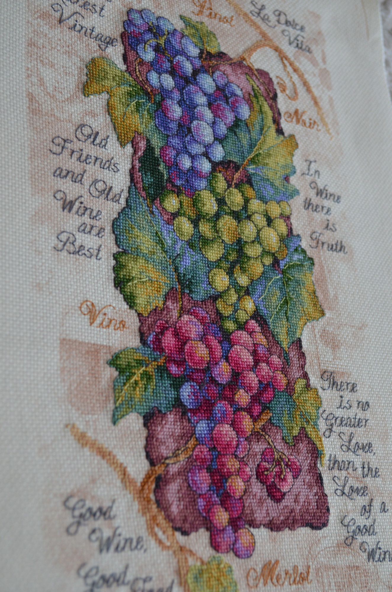 31 марта 2017 Под девизом, что лучше поздно, чем никогда откопала свою тему и хочу показать завершение процесса с виноградом, сделала надписи, постирала, отгладила и никак не могла выпустить фотоаппарат из рук, так нравится результат. Но вот фото готовой работы и деталей Теперь доделываю надписи в кошачьем календаре, думаю что скоро покажу завершение и этого процесса Natashik1978, AliraRo, Графиня и 11 других сказали спасибо Поделиться сообщением Ссылка на сообщение