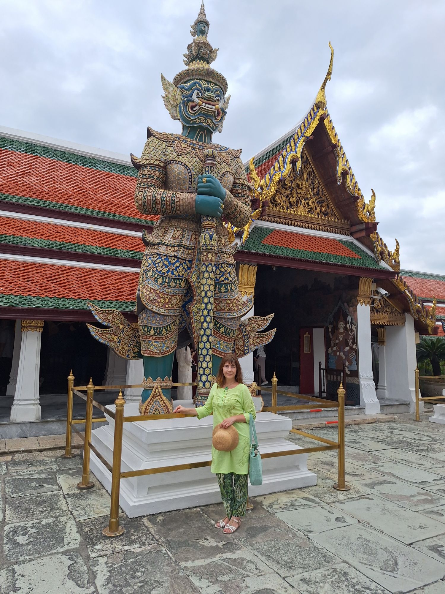 20 ноября 20.11.2025 в 04:15, olnikva сказал(а): А что значит бирка с номером 101 на твоей сумке? Олечка,спасибо за интерес к моим путешествиям!Отвечаю на вопрос.По тайскому законодательству гидами в Тае не могут работать иностранцы.И поэтому по Дворцу нас водила гид тайка,говорящая по-русски .Для них мы все -на одно лицо и поэтому,чтобы следить за экскурсантами ,им выдаются бирки или приклеиваются наклейки. Сразу скажу ,тайцы не очень хорошо говорят по-русски.В наших языках очень много несовпадающих звуков. Но к ним претензий нет,у них еще более сложный язык,включающий в себя 5 тональностей.Иностранцу,который учит тайский надо давать медаль за героизм! оленек, olnikva, irisheckin и 1 другой сказали спасибо Поделиться сообщением Ссылка на сообщение