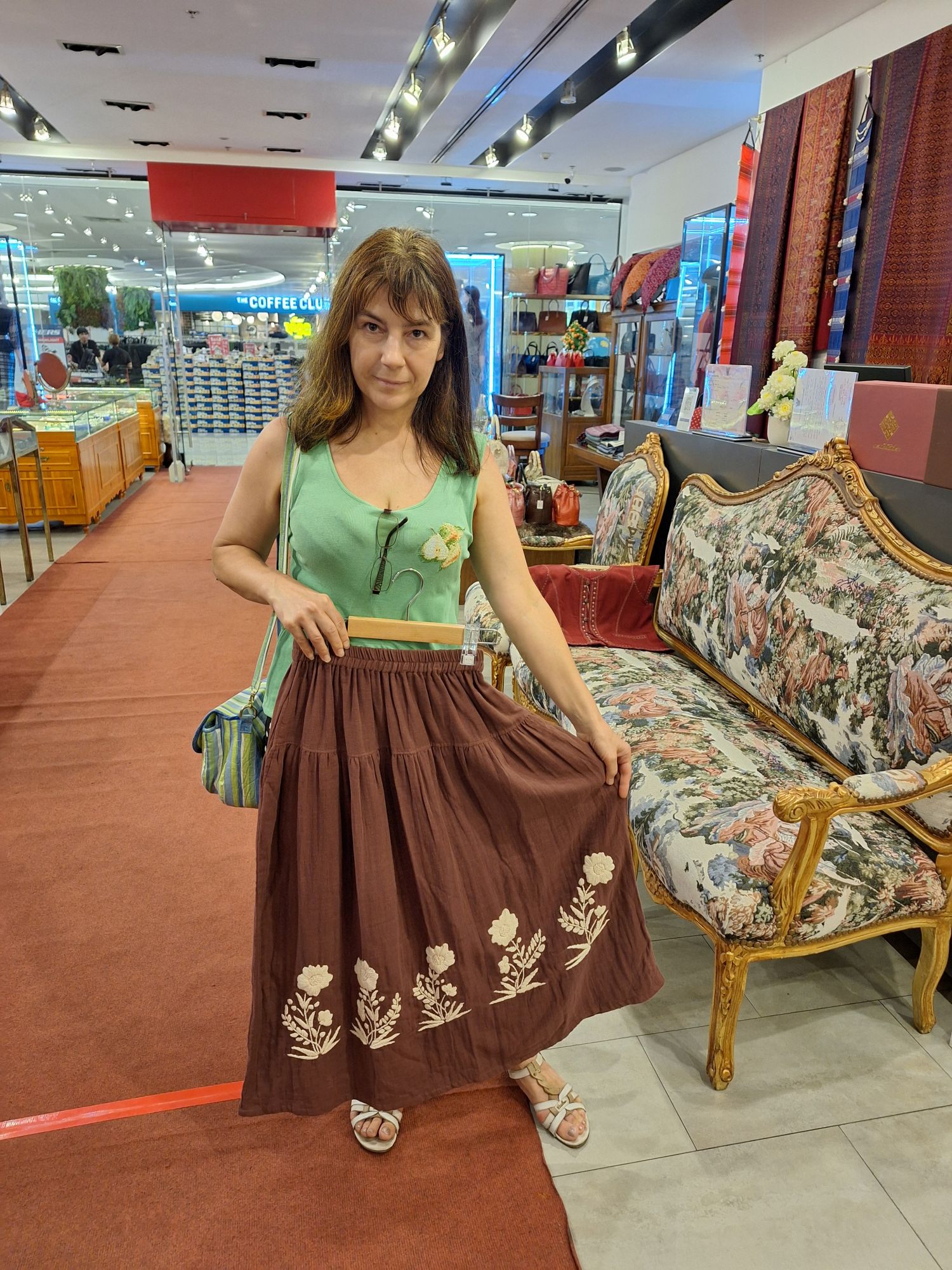 18 ноября Приветствую всех.Выхожу на связь из Таиланда.Летела сюда с намерением посетить Камбоджу и легендарный Ангкор Ват,но не сложилось.В результате тлеющего конфликта между странами,наземная граница перекрыта.Поэтому я езжу по всяким интересным местам Таиланда,изредка оказываясь на берегу океана. При этом я не забываю о нашем общем увлечении.Вот сегодня забежала в магазин в городке Паттайя,где я временно обитаюсь,и посмотрела изделия ручной работы.Сразу скажу,ценник аховый. Вот одежда представлена Вот я примеряю юбку.Вышивка максимально простая,ее и гладью не назовешь. Вот сумочки.Вышивки смотрятся немного детскими. Вот еще одёжка.Довольна забавная А вот покрывала.Сделаны из ткани,удивительно напоминающей равномерку.Я видела изнанку.Сразу скажу,назвать ее идеальной нельзя. Я наматывала круги по городу в поисках тайского или индийского шелков.Мне повезло,в маленькой мастерской по пошиву одежды мне пообещали поискать шелк.Искали долго,не нашли.Тогда я предложила им свою помощь и стала рыться на бесконечных полках.У меня глаз наметанный,я нашла шелк в ИХ магазине.Ценник просто смешной,особенно ,если сравнивать с Москвой. Вот мой улов.Каждого по 4 метра. Вчера я была в Бангкоке,посетила Большой королевский дворец.Впечатлилась! relax_cross_stitch, Путешественница, Забава_ и 9 других сказали спасибо Поделиться сообщением Ссылка на сообщение