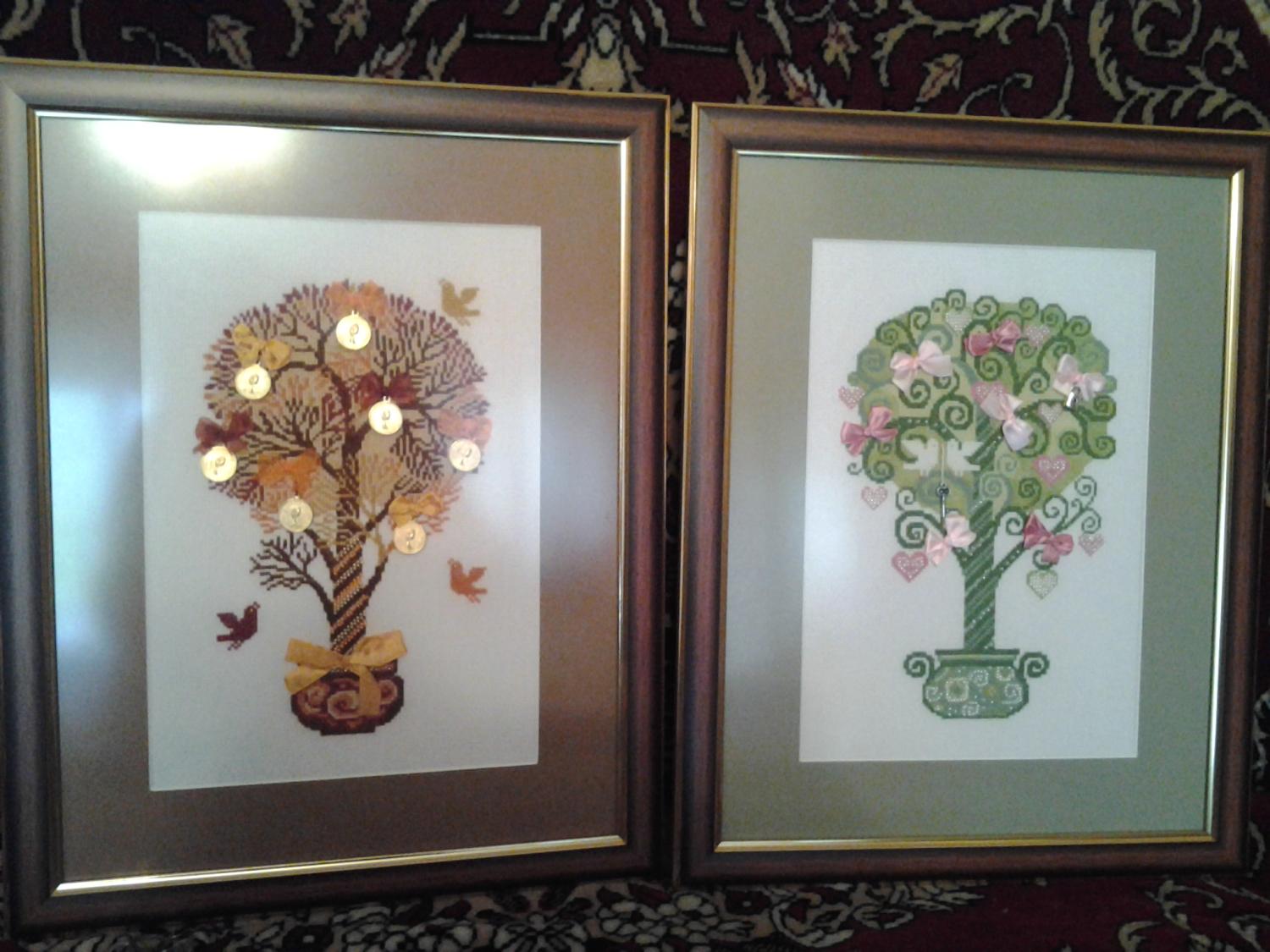 16 сентября 2013 Давненько я тут не появлялась... Да и стахановские темпы поубавить пришлось, ибо второй лист идет не столь просто, как первый, появились бленды и изредка одиночки, да и нитки чаще меняются. Вот бы где парковка пригодилась, но... не умею, и экспериментировать не хочу даже (по квадратам сразу перестаю ориентироваться в схеме, была уже попытка!). Но кусочек колхозницы появился уже, фото будет немного позже. А пока парочка готовых работ в оформлении. Деревца от Риолис. Правда, отсвечивает немного, т.к. из-за пасмурного дня пришлось снимать при электрическом свете. На неделе должна оформиться ромашка. Kattrielle, Каори, kas_julia и 7 других сказали спасибо Поделиться сообщением Ссылка на сообщение