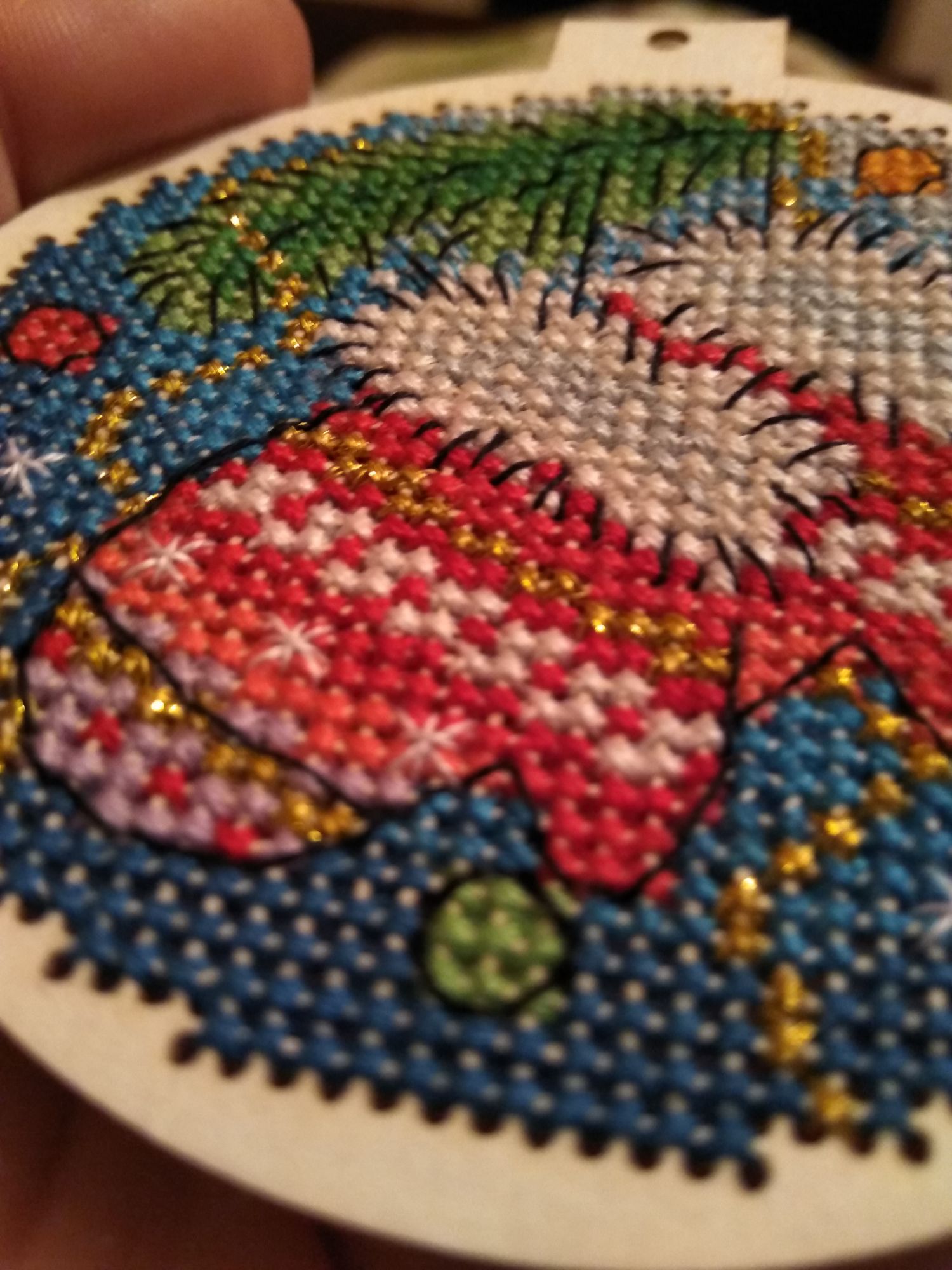 26 декабря 2018 И продолжение шариков от Панны (нет, не забыла я о них!) Шить здесь, в принципе, нечего делать, если шить их не как я - в час по чайной ложке))) Схема очень простая, ниточки хорошие по качеству и яркие - в общем, сплошное удовольствие! Два момента всё-таки имеются. Первый - основа. Она, как я уже говорила, весьма хлипкая - чуть сильнее затянешь крестик, и может порваться. Так и у меня получилось( вдобавок, "соскочил" рядом находящийся крестик. Пришлось под уже вышитыми стежками проложить в этом месте ниточки и крепить за них. На лицевой стороне это место незаметно, распознать можно только по изнанке и на ощупь. Изнанка закроется фетром и будет совсем незаметно. Зато вышла из положения. Так что имейте в виду, кто будет шить эти игрушки - с основой аккуратнее! Второй момент - о нём немало было сказано без меня - гаммовский металлик. Жуть жуткая. Одно радует - что его тут немного, а во втором шарике нет совсем. Зато во втором наборе металликом шьётся немало... мда))) Kattrielle, fenix34, татьяна0674 и 12 других сказали спасибо Поделиться сообщением Ссылка на сообщение