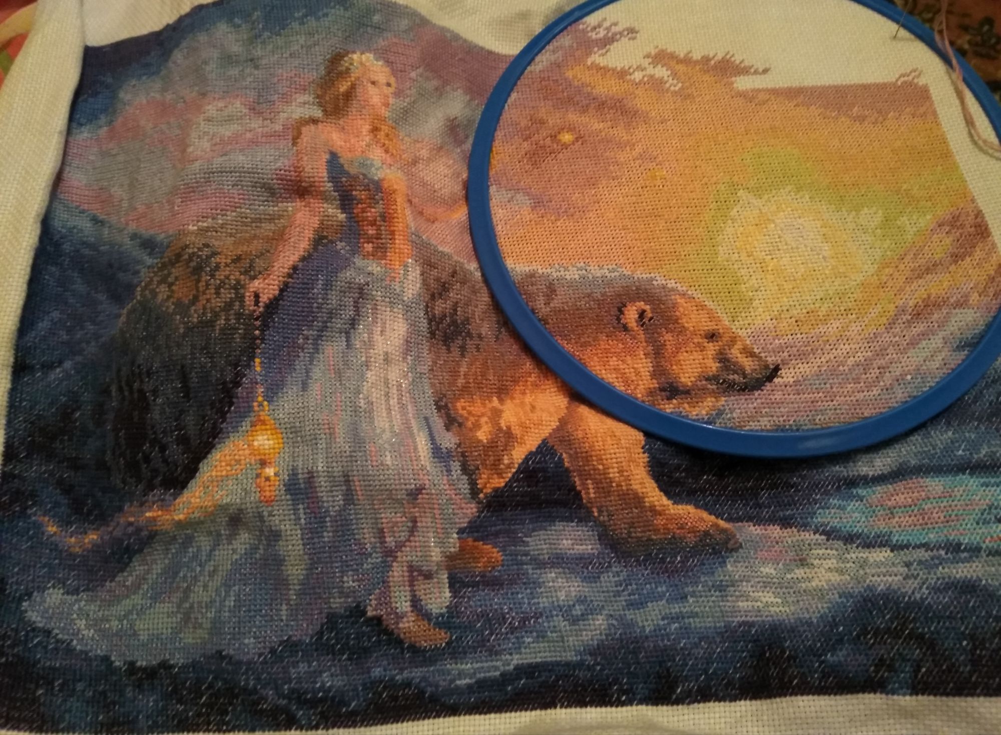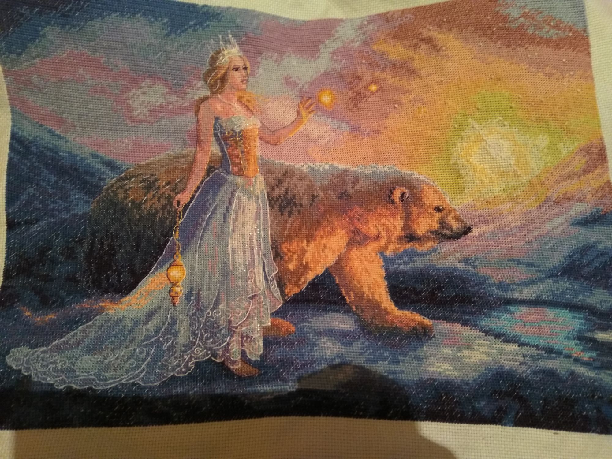4 марта 2019 Хи-хи... упаковка от Авроры на практически финишной прямой приказала долго жить... Развалилась прямо-таки на составляющие части))) Поэтому в спешном порядке, чтобы ничего не потерять, пришлось мне упаковывать всё в файлик. Но "для истории" дату сборки набора запечатлела) Дизайн, к слову говоря, тоже 2012 года, покупала и начинала его в 2013м. Сейчас (снова хи-хи) уже 2019й... да, время пролетело быстро! Если кому интересно, советую пролистать мою тему, наверное, со второй или третьей страницы, где я начинала этот процесс - ох, "лестных" слов в адрес ДИМа начитаетесь!)))) А вот сейчас я могу говорить диаметрально противоположное. Символично, но это мой второй ДИМ-голд, который и начинала вторым, и выбрала для завершения именно его, хотя начато было ещё несколько. Всё возвращается на круги своя, так сказать... Конечно, меня очень вдохновил канал Светы Горелкиной и её видео про весеннюю фею, в которую я просто влюбилась... а потом подумала - у меня ж в долгострое тоже волшебная барышня есть, хоть и другая, и не столь яркая в цветовом плане... но тоже классная! Вот так и вернулся из небытия этот процесс На выходных, к сожалению, не успела завершить, так как и выкладная нить мне даётся тяжело, а она тут непростая, и немало её, и свободного времени оказалось меньше, чем я рассчитывала. Но кое-какие фрагменты показать могу) Закончила полностью юбку, с выкладной нитью и фрузиками. Нить тут трех цветов - голубая, белая и желтая) Да, помучила меня она знатно... Особенно эти загогулины, там, где прямые участки - проблем не было. И ещё непростой участок, который не успела завершить вчера - верхняя часть платья, бленд желтого и металлика. Хоть металлик в ДИМе и хороший, но всё равно, металлик есть металлик... После того, как я сделала это фото, ещё выложила украшение на шее белым. Лицо и часть волос идут бэком. А вот платье полностью украшается выкладной нитью. Ещё выкладывается шерсть медведя и звёзды фрузлами в три нити - но это уже останется "на закуску"))) Возможно, кто-то скажет, что надо было всё это делать по ходу, а я скажу - нет! Мне нравится наблюдать, как постепенно проявляется рисунок, обрастает чёткостью и подробностями. Как будто раскрывается какая-то тайна) Видимо, всё это зависит от особенностей восприятия. Кстати, у меня есть очень интересные пополняшки, но обо всём позже кстати, из этих пополняшек два ДИМчика, и один из них собираюсь начать уже в четверг надеюсь, Аврора будет уже к этому времени завершена. Вы спросите, а как же трамвай, отвечу - да ну его, этот трамвай))) хочу шить ДИМ! Kattrielle, ОльгаВл, Путешественница и 14 других сказали спасибо Поделиться сообщением Ссылка на сообщение