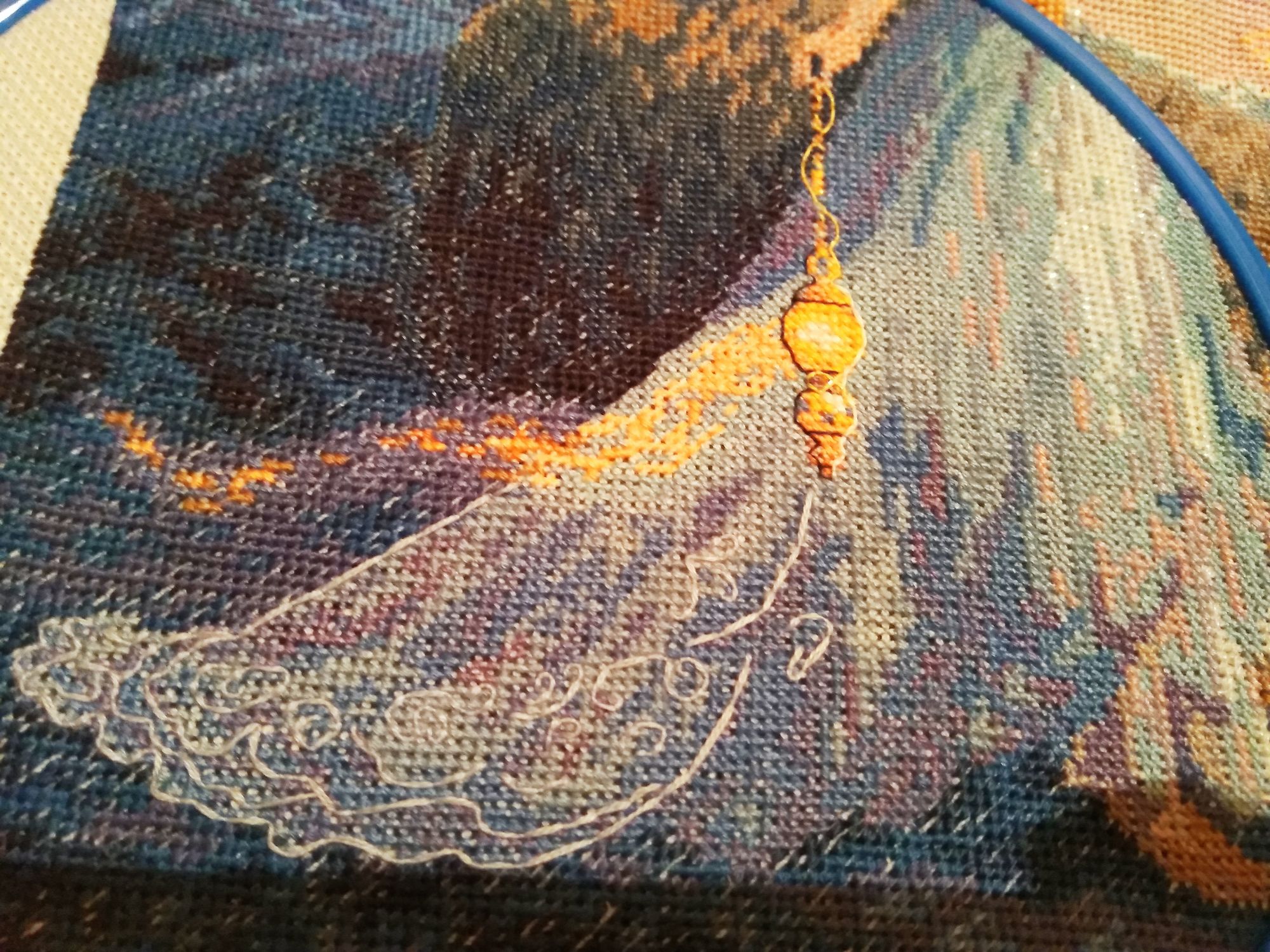 1 марта 2019 Что для меня страшнее бэка? Оказывается, есть такое))) а именно - выкладная нить. Никогда её до этого не делала, и не думала-не гадала даже, что оно может быть так сложно... Нет, там, где прямые участки - ещё ничего, но "загогулины"... рукалицо, в общем))) Но получается красиво... Есть тут и ещё один нюанс, за который весьма переживала. Дело в том, что ещё давно, когда только начинала этот процесс, как раз в нижней части платья накосячила... и, как нередко водится, об этом факте благополучно забыла. Вспомнила лишь сейчас, когда увидела, что не получается сделать чётко по схеме. В целом и общем, конечно, совпадает, да и кусок с ошибкой вроде бы позади. Кстати, здесь в галерее видела работу, где выкладная нить сделана в упрощённом варианте. Что могу сказать - лучше помучиться, но выложить как надо Путешественница, maui, Nyurka-86 и 18 других сказали спасибо Поделиться сообщением Ссылка на сообщение