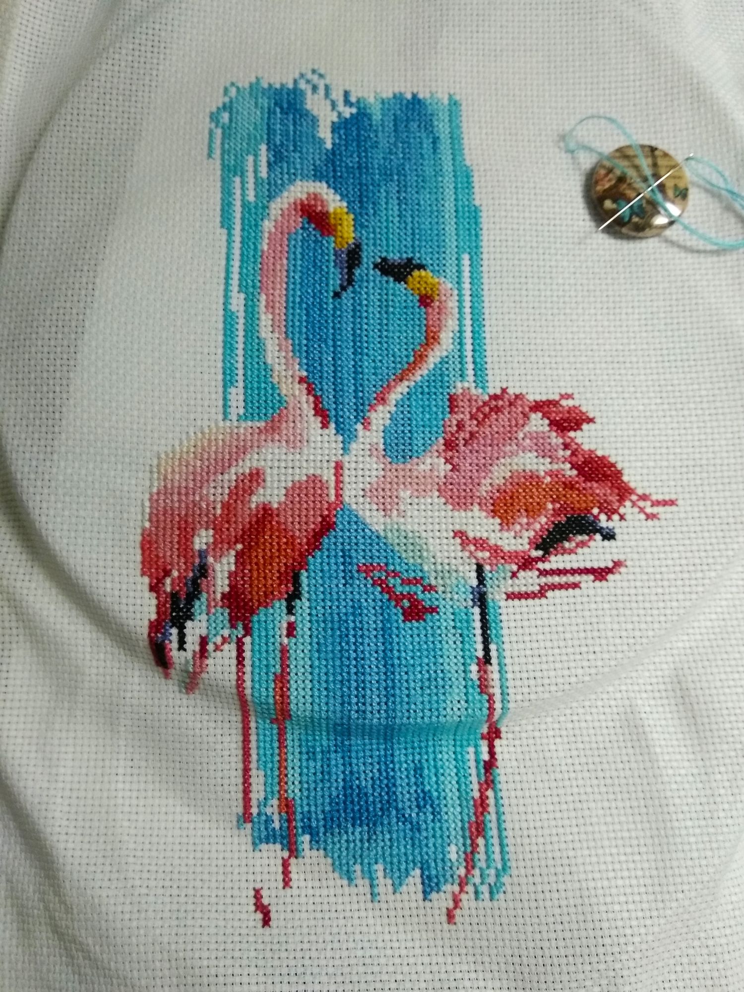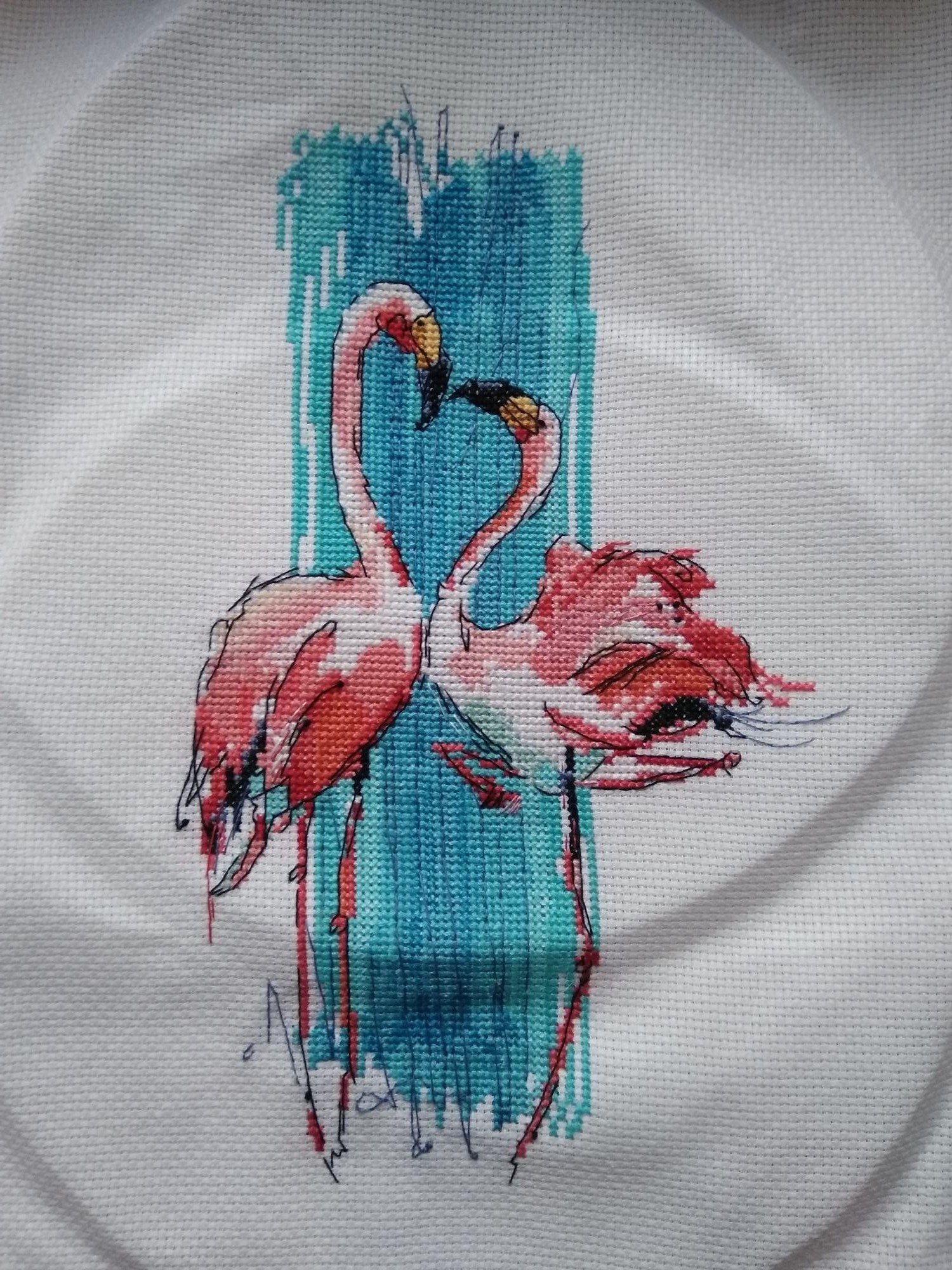 28 сентября 2019 А я пока что могу поделиться продолжением фламинго от Панны. В силу возникших обстоятельств вышиваю пока что их, но уже завтра вернусь к ДИМу) И у меня готова крестиковая часть, без бэка. Бэк здесь несложный, счётный, впрочим, как всегда у Панны. Тем более на Аиде Так что проблем не должен доставить от слова "совсем") Но пока что нет возможности постирать и погладить, так что оставлю это (а возможно, и окончательный дошив) на завтра. Или послезавтра. Уже не загадываю, ибо загад, согласно поговорке, не бывает богат Как получится, в общем. Уже говорила, скажу ещё раз - очень мне нравится цветовая гамма, особенно работа дизайнера с голубыми оттенками. Такие потрясающие переходы цвета, не перестаю ими любоваться. И есть идея оформления - но если её реализую, готовую работу, скажу сразу, не покажу. IrnKA, S4astlivaja, almmatea и 15 других сказали спасибо Поделиться сообщением Ссылка на сообщение