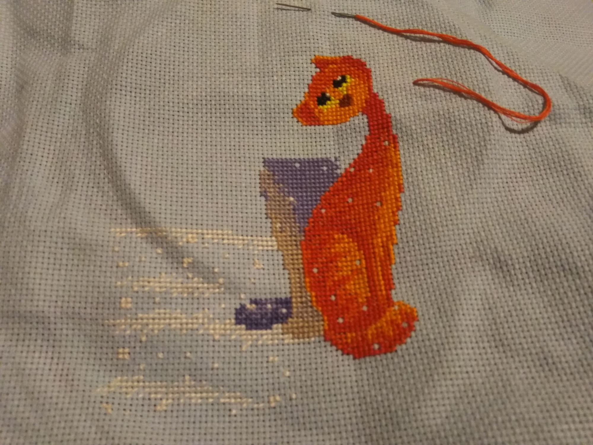 30 ноября 2019 Рубрика "Вышивальная рулетка". Вы не забыли о ней ещё?)) Я нет, просто времени на неё пока что не выдавалось. А виноват во всём новый процесс! Да-да, начала я кое-что новенькое... но, отшив небольшой фрагмент, столкнулась с тем, что нитки сильно перетираются. Заменила иглу - проблема не ушла. Так что пошла я на кардинальные меры и постирала канву (хоть и не люблю никакого "вмешательства" в исходные материалы). Надеюсь, поможет - этот способ уже меня выручал) Ну а пока канва с первыми крестиками нового процесса сушилась, вспомнила я о том, что... совсем позабыла о рулетке!))) Извлекла последний выпавший на ней процесс - это были котики от Овна, натянула на пяльцы и продолжила. И вот что имеется на настоящий момент Не нравится мне вышивка в три нити, но тут уж ничего не поделаешь - так задумано производителем. Есть и бленды, которые тоже идут в три нити, так что вариант с сокращением нитей до двух тут явно не вариант) Вышивание в три нити создаёт определённые трудности, например, с закрепкой новой нити на пустом участке основы (вдвое петелькой ниточку тут уже не сложить), и на нижнем участке фона я довольно быстро выдохлась. Даже кота не дошила))) Ну да ладно - я ж никуда не тороплюсь, и в любом случае работа продвинулась! Следующим заходом, когда он будет, завершу кота и здание у него за спиной, потом - нижний фон и набережную за спиной у кошки... и останется небо, которое не было бы столь жутким в исполнении, если бы вышивалось в две нити. Но тут оно тоже в три. Так что - собрать волю в кулак и дерзать, когда этот процесс снова выпадет!)) Крутанула я снова рулетку... и снова выпали мне зимние котики! Но на этот раз - наши уже старые знакомцы от Анкор Так что следующее продвижение в рамках рулетки будет по ним. Вопрос только, когда) Wildkatze, Ан4оус, Путешественница и 16 других сказали спасибо Поделиться сообщением Ссылка на сообщение