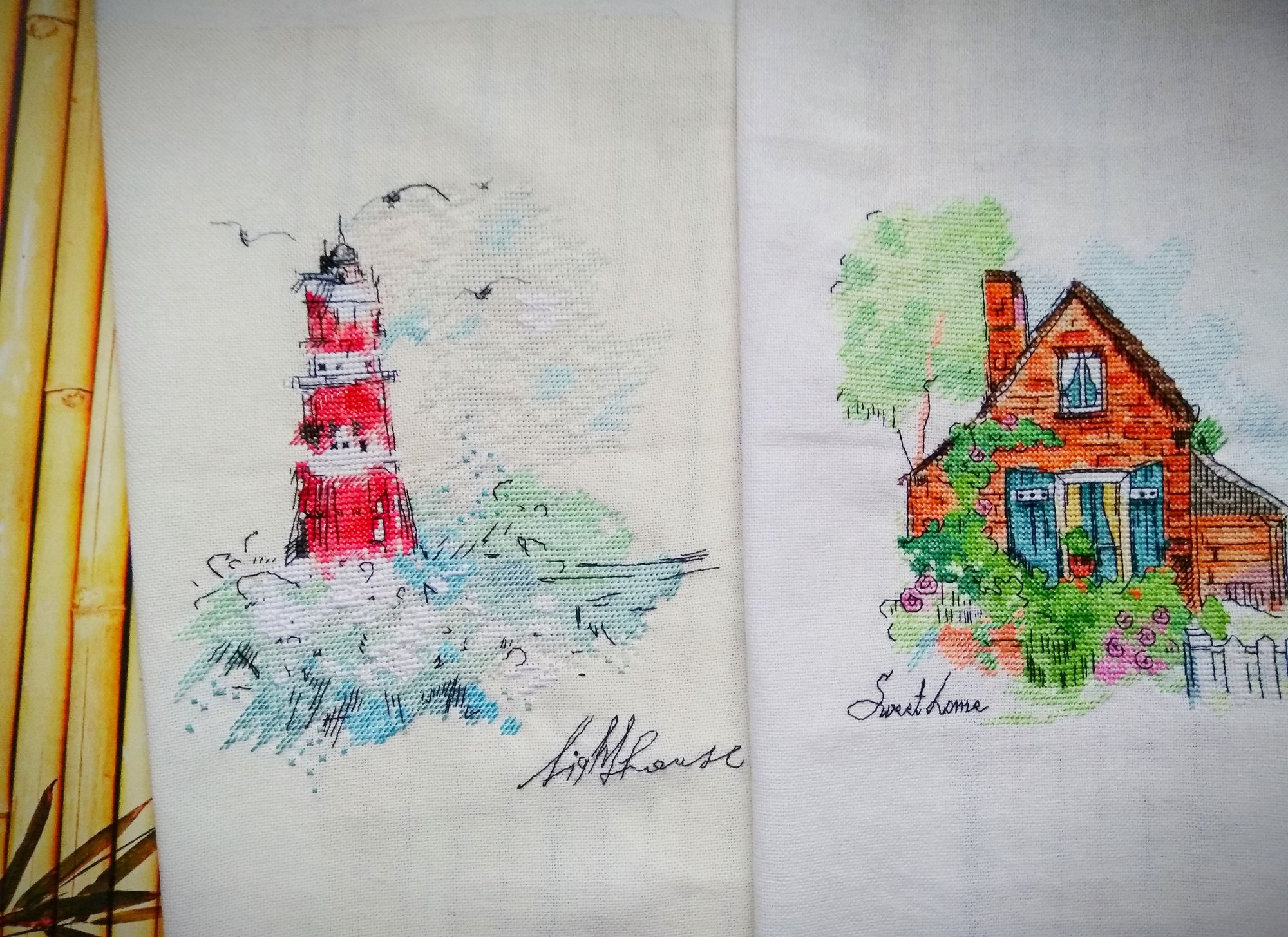 28 ноября 2019 Лена, спасибо тебе большое!) К Новому году, надеюсь, будет у меня ещё один домик))) Вот только сейчас заметила, что забыла его сфотографировать... собиралась же, но в утренней суете, видимо, запамятовала. Ну тогда пока на словах скажу, что в левой части начала зашивать фон. Как раз над самим домиком - пока что можно посмотреть на превью для полного представления. Вот где уж точно отдыхалочка пошла! И пейзаж начал буквально на глазах "оживать" - словно повеяло вечерней тишиной и безмятежностью. Представляю, что будет с бэком... И, надеюсь, с оформлением тоже не затяну. Уж очень хочу его поскорее на стену повесить! Egelia, Графиня, Ан4оус и 1 другой сказали спасибо Поделиться сообщением Ссылка на сообщение