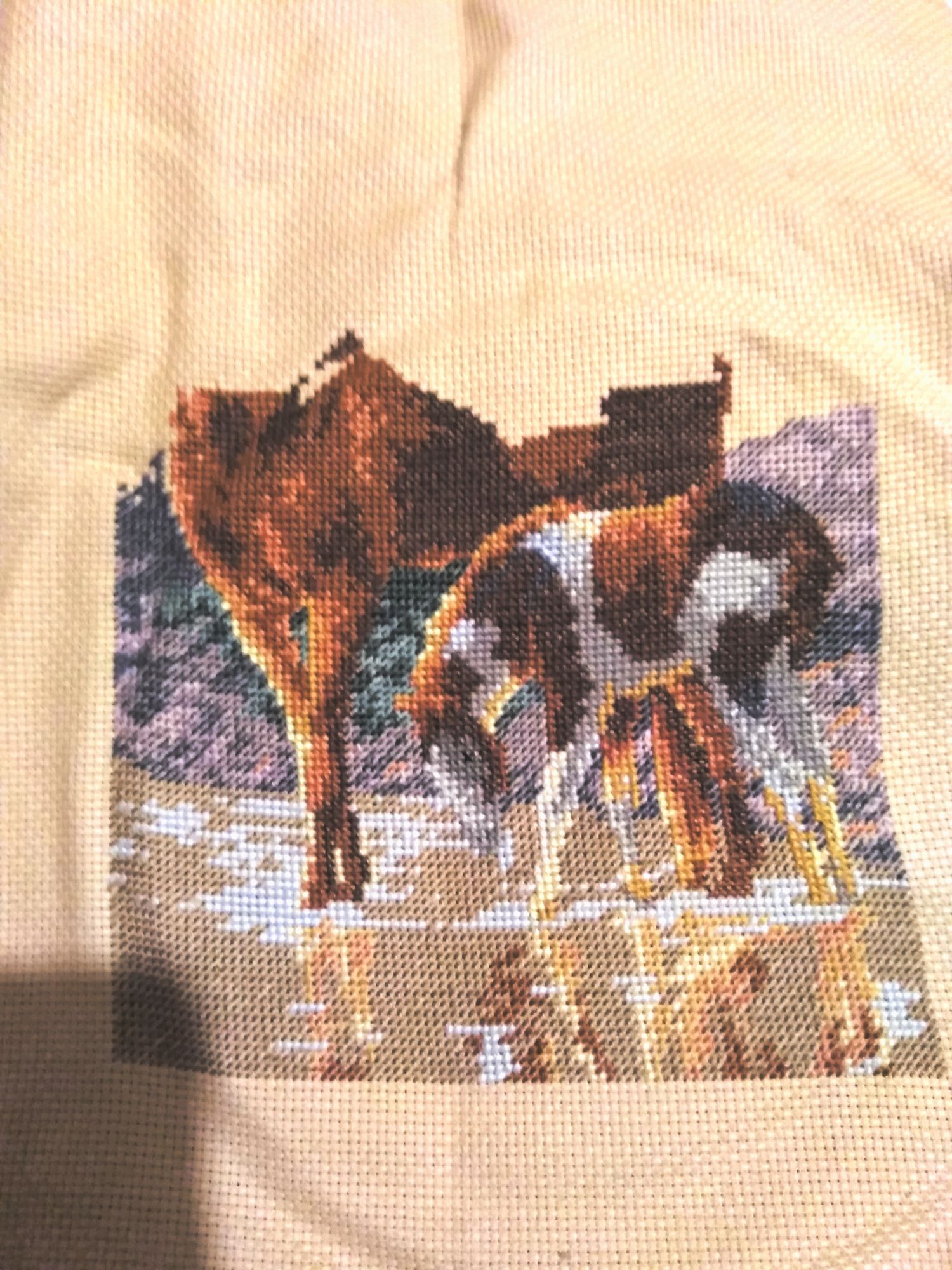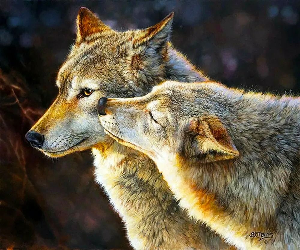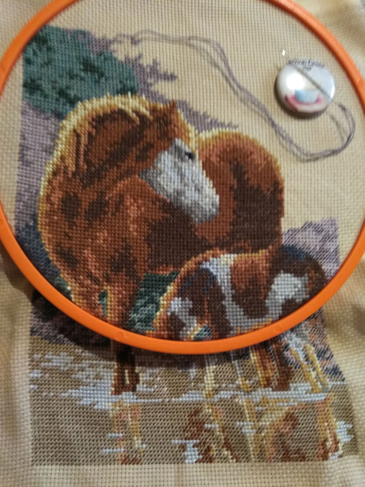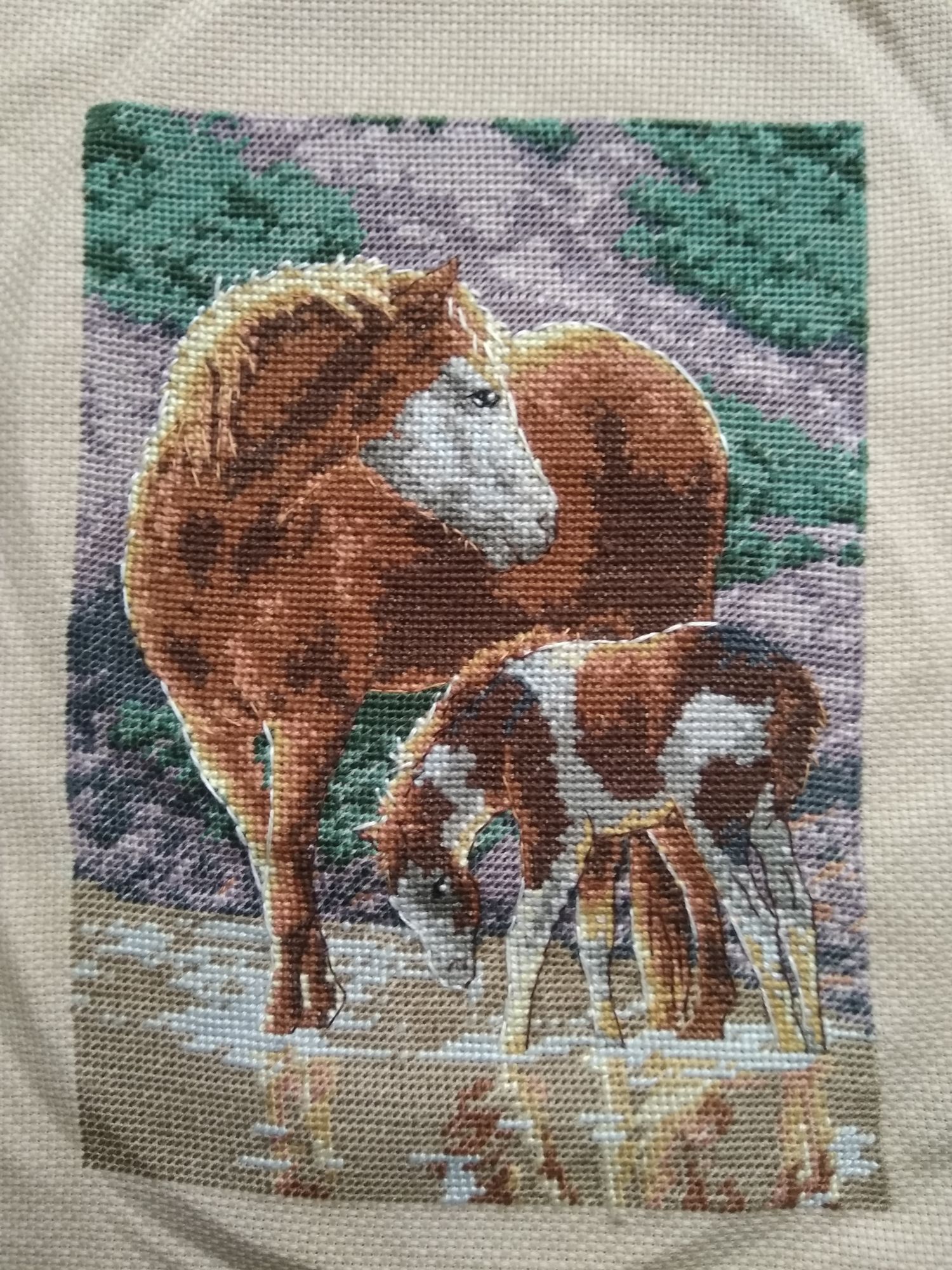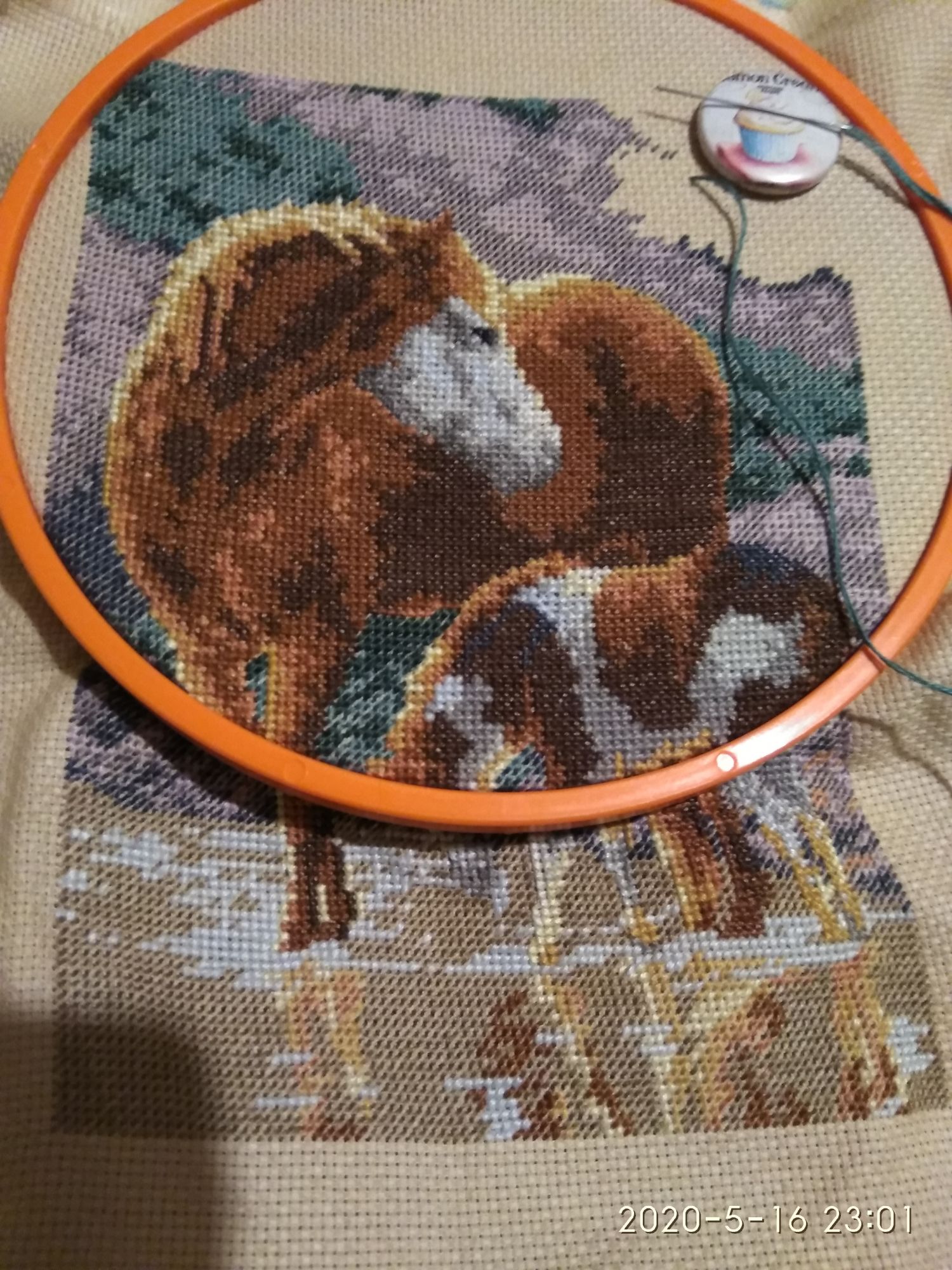 7 мая 2020 Наташа, Оля, спасибо вам большое!) Да, Аромат роз теперь уже пройденный этап))) И, удивительное дело - его не хочется забывать, как страшный сон. А вот в оформлении видеть очень даже хочется Но пока и багетка закрыта, а когда откроется - туда поедет другая работа, более первоочерёдная. Но и этой придёт час, конечно! По поводу поезда - бленды меня не пугают, хоть их и много на общем фоне. А вот... даже не мешанинка, а участки по 2-3 крестика одного цвета присутствуют. Что не очень люблю, если честно. Понятно, что без них ничего не получится, но вот напряжно малость))) Морская прогулка продвинулась и мог бы уже быть завершён лист, если бы не... Но обо всём по-порядку))) Вот в таком состоянии мне пока пришлось отложить работу, потому что наступил ДИМомай! Завсегдатаи вышивального инстаграма и ютуба наверняка знают, что это такое. Ну и я мимо не прошла, начав новый ДИМчик. Выбор мой был обусловлен следующими причинами - небольшой размер, несложная схема. И, к тому же, его я планировала начать в апреле, даже ниточки разобрала, но принялась бороться с долгостроями. И тут ДИМомай - ну чем не повод реализовать запланированное!))) Ради интереса поискала исходник. Его автор - американская художница-анималист Бонни Маррис, которая написала немало красивых картин с лошадьми, волками, медведями и прочими дикими животными... и не только) Полагаю, что исходной послужила именно эта картина (судя по позам лошади и жеребёнка), третью рядом стоящую лошадь ДИМ убрал. Кстати, не только эту картину ДИМ взял у этой художницы. Вот, например, узнаёте?) Это же знаменитый Волчий поцелуй, тот самый, что вышивается на чёрной канве! А вообще любителям красивых картин с животными настоятельно рекомендую ознакомиться с творчеством этой художницы, поисковик вам в помощь! Ну и не зря я упомянула "не только" о диких животных. Вот на такого котейку кисти Бонни Маррис я натолкнулась и мимо пройти никак не смогла! Аринесса , Ginger_mama, Kattrielle и 35 других сказали спасибо Поделиться сообщением Ссылка на сообщение