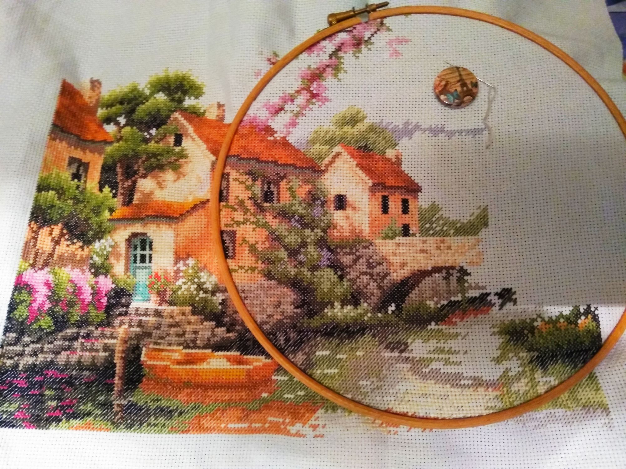 31 августа 2020 Лера, Юля, спасибо вам большое!) Ценник на ЭстЭ... да, олимпийский. Но качество проработки всё-таки на высоте. Вроде бы еще НаДиМа очень неплохо многоцветки рисует, раньше она сама всё отшивала (не знаю, как сейчас), у неё схемы подешевле точно. Но опять же, отшитые. Для меня это был бы решающий фактор, если бы я захотела купить что-то такое. А у меня небольшое продолжение Деревенского канала) Нравится мне этот "мостик в никуда"))) Но, с другой стороны, хочется его поскорее присоединить к противоположному берегу, который к нему уже подбирается. Впереди самое интересное - задний план, к которому очень хочу приступить, и самое замороченное - ветки, в которых сплошная мешанина. И хорошо, и плохо, в общем Тётушку номер два, как я говорила, тоже начала - правда, времени на неё пока не было. Равно как и на кофейню. Не хочу распыляться, когда есть процесс, идущий (и неплохо так идущий) к завершению и отнимать у него драгоценное время. Но по тётушке покажу, что есть. Она будет вышиваться так же, как и первая - неспешно Кисуля, IrnKA, Гало4ка и 20 других сказали спасибо Поделиться сообщением Ссылка на сообщение