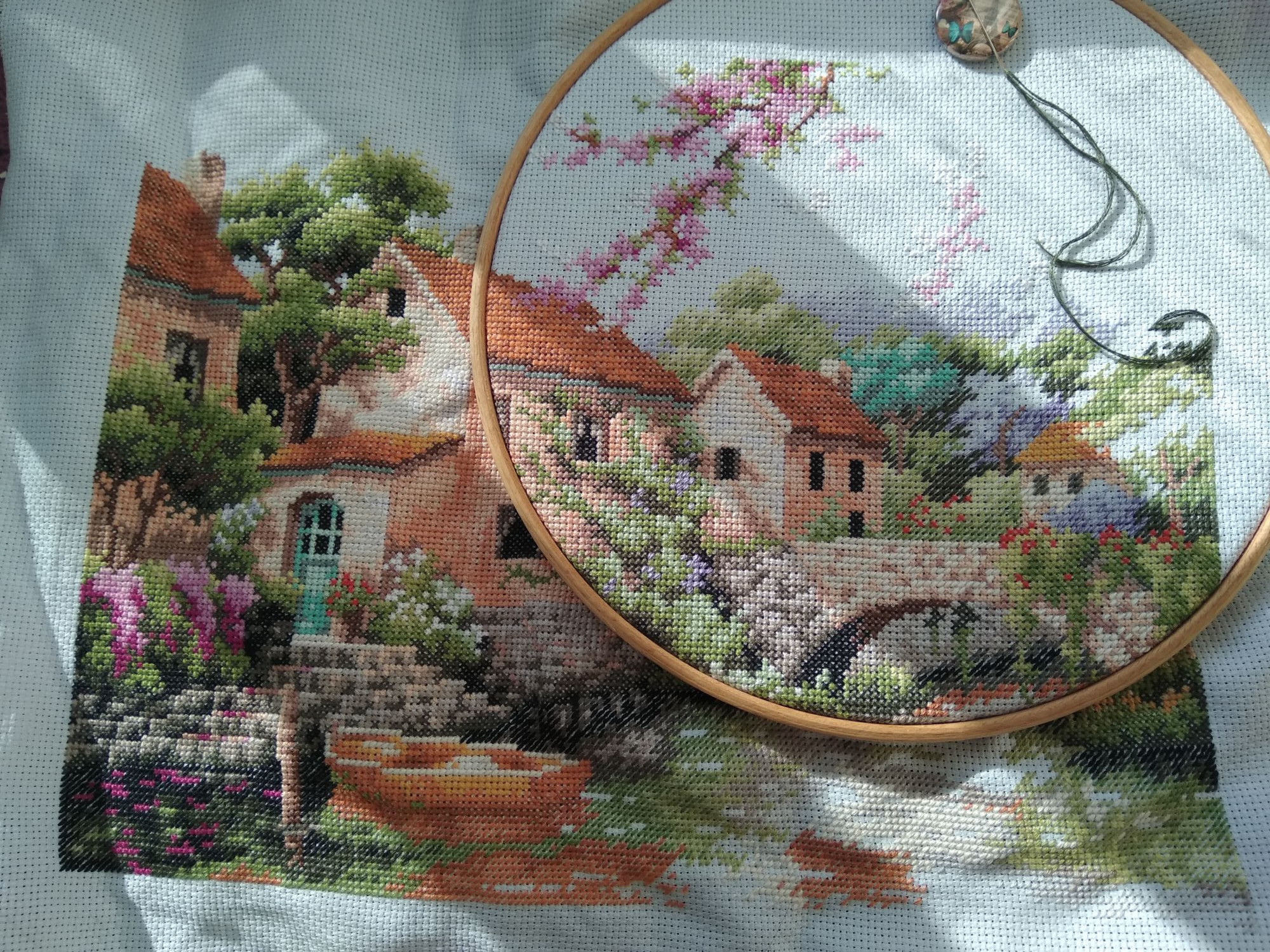 9 сентября 2020 Юля, Таня, Лера, Оля, спасибо вам большое!) А теперь обо всём и по порядку Вот практически на таком месте у меня сейчас Деревенский канал. Почему "практически" - потому что по факту сейчас немного больше, но не люблю показывать совсем незначительные продвижения. Скажу только, что дерево возле второго домика восхитительных зеленовато-мятных оттенков (как дверь на первом домике) уже по факту есть) За цветопередачу прошу прощения, ибо истинную она не отражает, но световой день сейчас сильно сократился, и если ещё совсем недавно была возможность сделать нормальные фото утром, то сейчас - только в выходные. А за столько времени многое в процессе может измениться) думаю, что к тому времени перейду к веточкам сакуры. И да, я полна решимости на этой неделе финишировать! Вопрос только за временем, которого может не оказаться достаточно Ну ладно, поживём - увидим!))) Было ещё заметное продвижение по кофейне, но сфоткать забыла, так что придётся подождать до следующего отчёта На этой неделе шью только Канал, поэтому в других процессах изменений не будет. 08.09.2020 в 07:34, Грёза сказал(а): Спасибо тебе, дорогая, за ликбез - я и не знала до сегодня об этом авторе,а сейчас на её сайте сижу, скачиваю себе превью на телефон,чтобы рассмотреть получше. И столько красоты у неё! НаДиМу я помню ещё с сайта "Сколько крестиков.ру", ныне не существующего (кто не знает - его закрыли два года назад). Она ещё вроде бы тогда ещё не продавала схемы и разрабатывала их для себя, сама же и отшивала, продавать начала позже. Не знаю, продаются ли у неё эти тогдашние разработки "для себя", но можно было увидеть отшивы в исполнении автора. Вот в качестве её схем я не сомневаюсь, в отличие от Химеры. Просто сама не горю желанием шить простыни, ибо времени нужна масса, одно и то же шить годами (а в моих обстоятельствах так бы и вышло) лично мне было бы дико скучно. Да и мода на такие дизайны рано или поздно пройдёт, как и любая мода, останутся лишь преданные поклонники данного стиля проработки - а уж сколько будет незаконченных работ, начатых вышивальщицами лишь под влиянием моды... лет 6-7 назад и я могла бы на такое купиться, сейчас уже свои силы адекватно оцениваю. Ну а уж если прям так захочется что-то только крестиком и без бэка - у меня Золотого руна в закромах масса, шить не перешить))) Ну а что касается тётушек от РТО - они очень интерьерные, и это подкупает. Только мне не нравится, когда их оформляют в широкие рамы, ассоциируется по стилю с иконами. Так что буду подбирать что-то другое) ОльгаВл, Selinta, Кисуля и 17 других сказали спасибо Поделиться сообщением Ссылка на сообщение