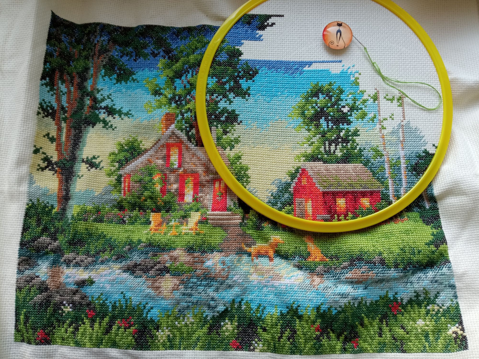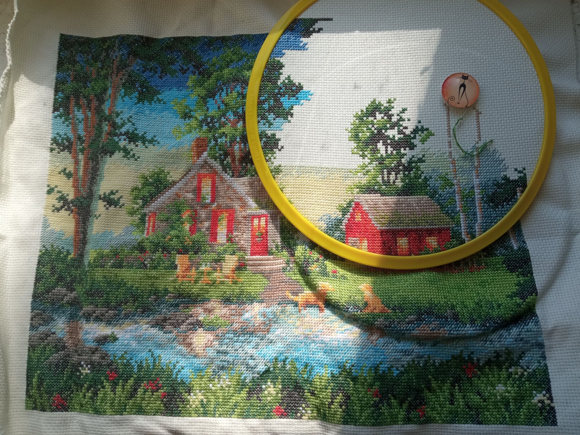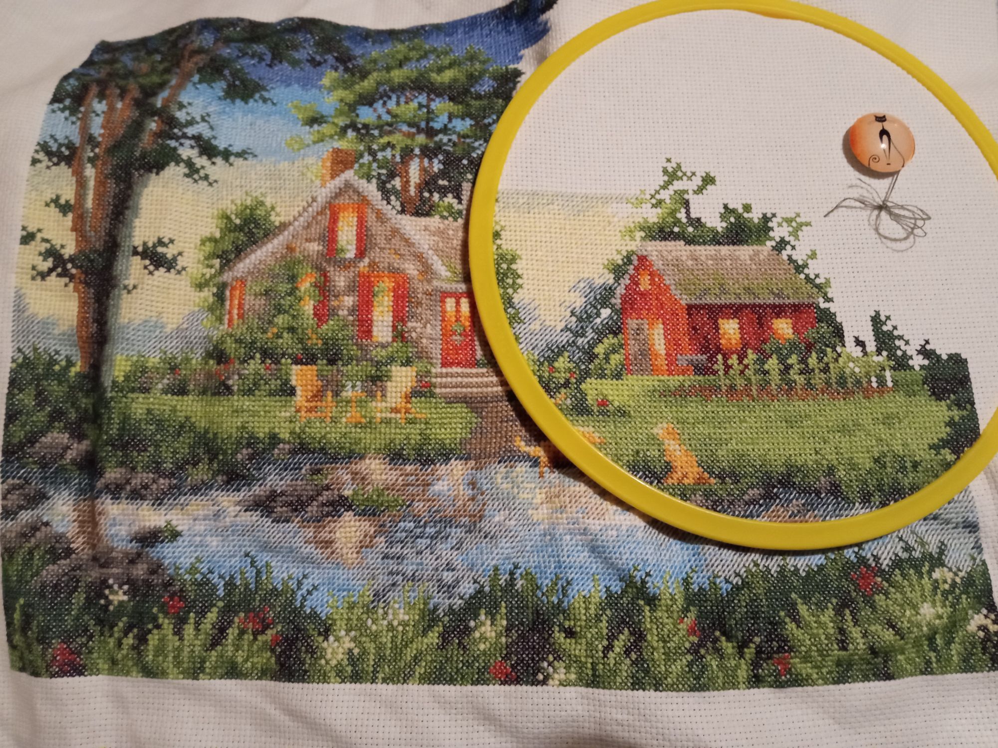 12 июня 2021 Летний коттедж. Наконец "достроен" сарайчик, и теперь он уже не выглядит руинами или заброшкой. Напротив, имеет очень даже обитаемый вид - виден свет из окон и распахнутой двери, на грядке вовсю растёт... а что растёт? Я вот никак морковь не могу развидеть))) хоть и понимаю, что ботва слишком для моркови высокая будет. Но вот вижу морковную грядку, и всё тут Кстати, именно в том месте мешанинка имеется, и справиться с ней мне помогло лишь то, что всё вышивается полным крестом. Будь чередование креста и полукреста, и я бы давно уже сбилась. Впереди... эх, снова деревья, вот не очень их люблю ни у какого производителя! Даже у ДИМа) Зато потом все не самые приятные эмоции компенструются зашивом безумно красивого фонового неба. А ещё сейчас - "переломный" момент отшива, от которого напрямую зависит его завершение. Будет ли работа энное количество времени отлëживаться перед бэком, если не самые приятные эмоции будут преобладать (как это вышло с Деревенским каналом), или смогу взяться за отделку сразу, если окончание крестовой части не подарит негатив. Irina 1, Сибирская Кошка, solnishko-ym и 14 других сказали спасибо Поделиться сообщением Ссылка на сообщение