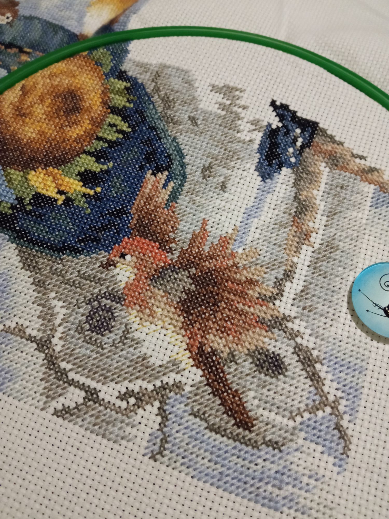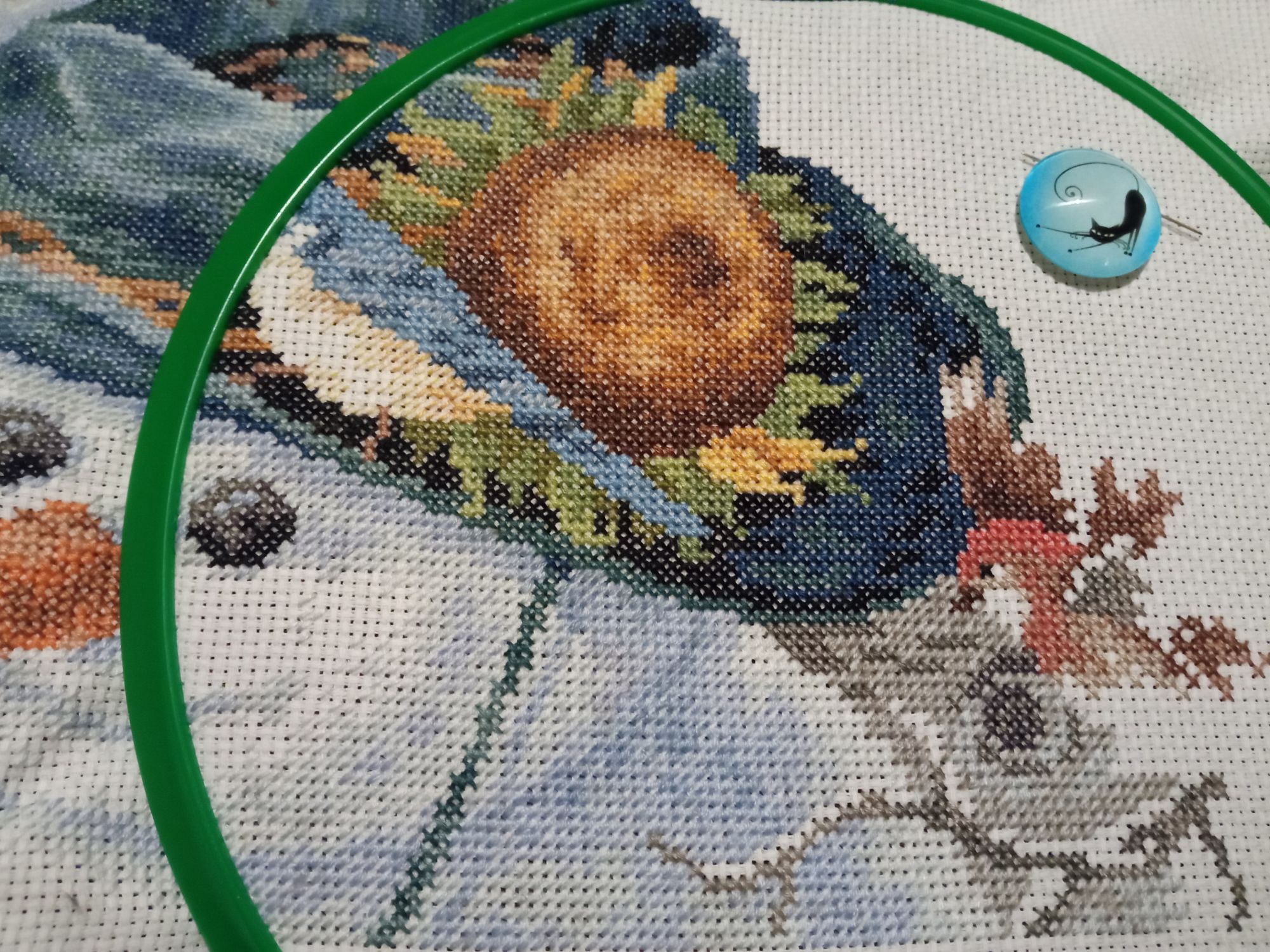 13 ноября 2021 Но ведь негоже про Снеговика забывать, не так ли? Вот и его шляпа наконец готова, и сам подсолнух) А вот и птичка обозначилась) По проработке видно, что она самая пёстрая изо всех. И эта птичка, и сам подсолнух - место... не могу сказать "сложное", так как в этом дизайне нет ничего сложного в целом... не самое простое, скажем так. Единственный участок, над которым немного нужно потрудиться, скажем так. И, несмотря на это, сам подсолнух отшился на одном дыхании. А ещё из работы, к моему облегчению, вышел цвет 15356, о котором я переживала. Осталось, правда, всего полторы ниточки - но нитки три или четыре я отсюда брала для осени, так что по идее запас предусмотрен. Закончив шляпу, я переставила пяльцы непосредственно на птичку и правый нижний угол, до которого осталось всего 30 крестиков. То бишь всего ничего, и то сплошной полукрест. И если до сего момента я ещё подумывала, то сейчас окончательно решила взять работу на завершение. Не загадываю, ибо загад не бывает богат - но надеюсь первый день зимы встретить уже с готовой работой и с таким актуальным для этого времени года сюжетом Kattrielle, solnishko-ym, карменсита и 15 других сказали спасибо Поделиться сообщением Ссылка на сообщение