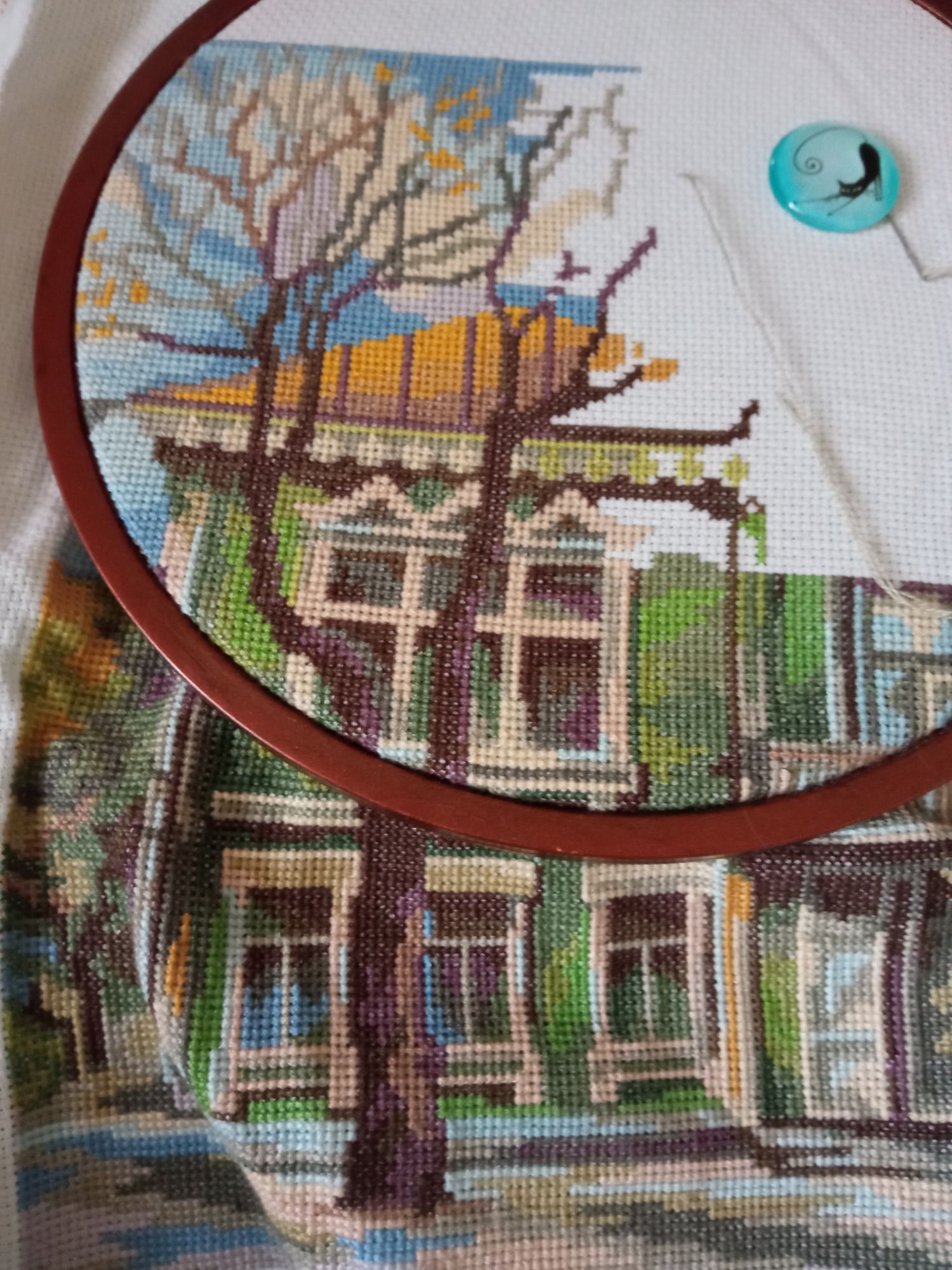 1 февраля 2022 Юля, спасибо тебе большое!) про выбор - согласна полностью! Вот не трогают меня, например, Тоскана и иже с ними, ну замылили глаза у всех производителей, вплоть до ДИМа. Как будто кроме Тосканы и Прованса мест нет больше... Озёра глаза замылили уже в дальнейшем (вот, совсем недавно отшив очередного озера в галерею выложили). Хотя неизбито, в отличие от Тосканы. А вот озеро Луиз и Мраморный каньон, как мне кажется, самые атмосферные из серии. Особенно всё-таки каньон - благодаря изображённой суровой северной природе. Есть в этом что-то такое... Ещё немножко дом покажу. Уж надо доделывать, совсем немного осталось Наконец закончился участок из переплетений веток и разноцветных кусочков неба, напоминающий мне витраж. Не то чтобы сложно - нудновато, это раз. Да и в ветках пару раз запуталась и перешивала - это два. Дальше будет и проще, и интереснее. Ну и финиш не за горами Аринесса , Kattrielle, fenix34 и 13 других сказали спасибо Поделиться сообщением Ссылка на сообщение