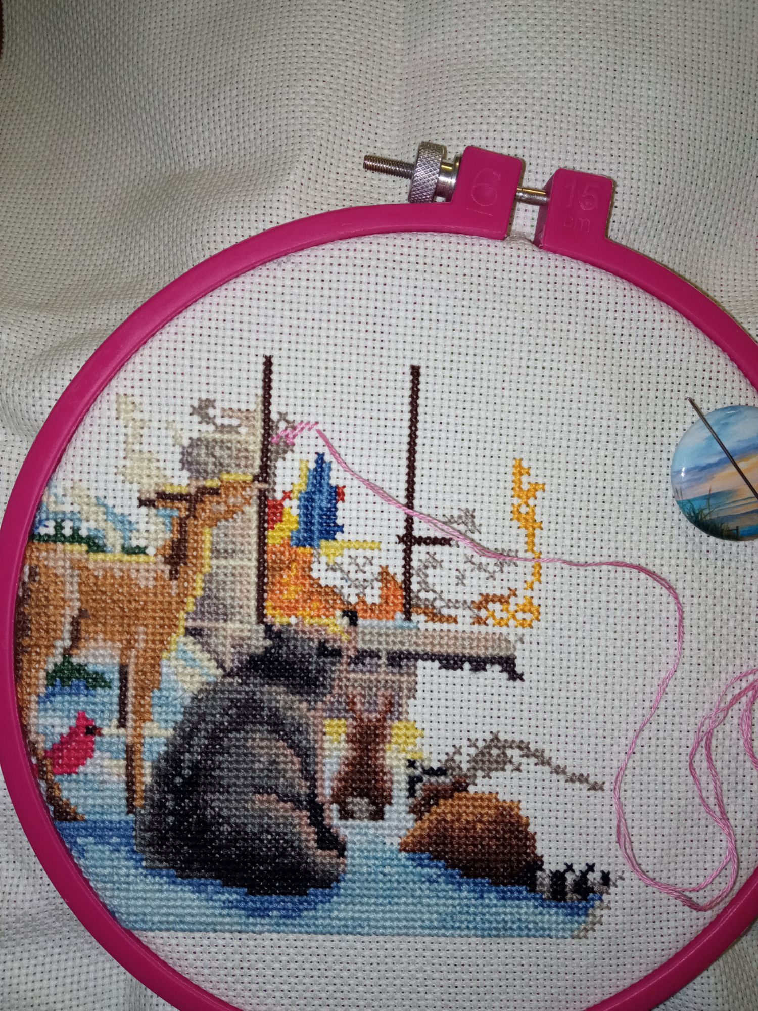 17 января 2023 Результаты ещё пары подходов. К Рождеству: Решила немного поработать над витражом, дабы немного разбавить серо-буро-малиновую серо-коричнево-голубую цветовую гамму и добавить ярких красок. Розовых, например. Вот тут-то этот процесс во всей своей красе! И в плане красок, извиняюсь за тафтологию. И в плане сложности-мудрëности. Вот где ниточка меняется чуть ли не через каждую пару крестиков Вот думаю, как бы в долгострой не ушло... И Эльбрус, который пока ещё без Эльбруса))) но, думаю, он-то как раз с Эльбрусом скоро будет! После сложного участка процесс пошёл довольно бодро. Хоть и устала я от бесконечной зелени - но ещё несколько цветов вышли из работы, что не может не радовать. Осталось буквально крестиков 20 одного цвета, примерно столько же другого и около 200 третьего... и всё! Зелени больше не будет, только в бэке. Зато можно будет наконец приступать к самому Эльбрусу. А уж о вдохновении для него я позабочусь Главное, чтобы погода была подходящая) Tatiana Ch., Гало4ка, Полли и 11 других сказали спасибо Поделиться сообщением Ссылка на сообщение