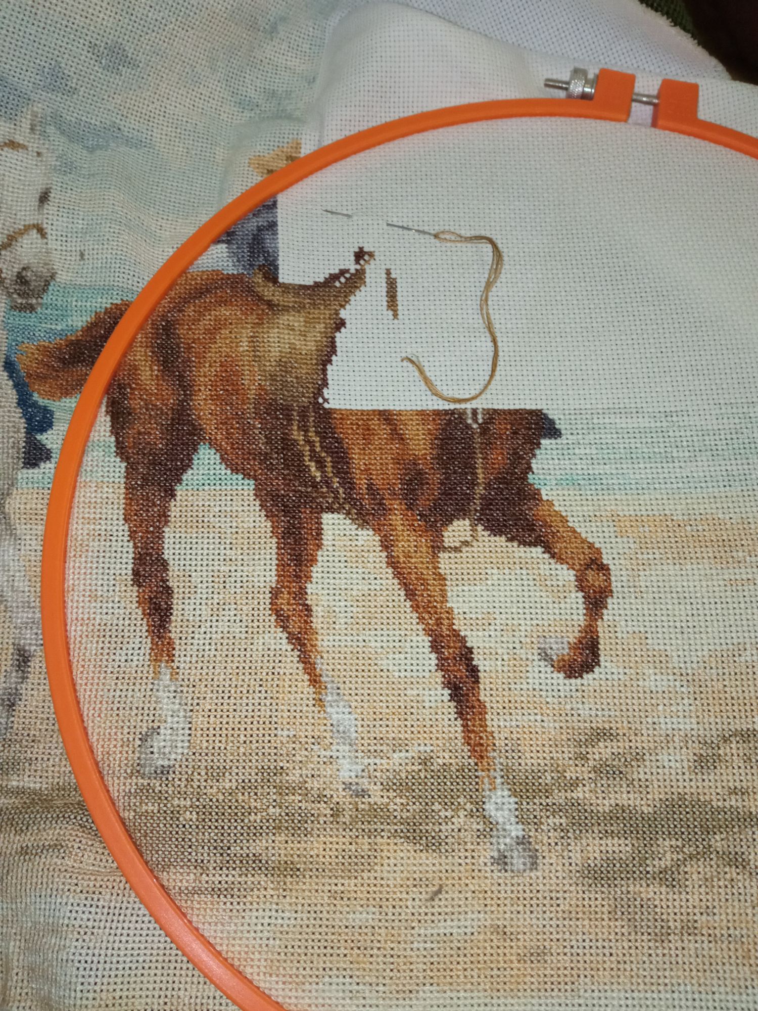 3 февраля 2023 Морская прогулка. Кое-как накропала на отчёт. Хотя процесс, во-первых, нуднейший, а во-вторых, учитывая некоторые житейские обстоятельства, и того могло не быть. Так что кто молодец? Я молодец Помню, как долго вышивала первую лошадь. А у этой раз-два, и седло готово. Думаю, может, чтоб не так скучно было, вышить лошадь и девушку, а потом за фон приняться. Главное, на нём-то не погореть! Самое интересное, что когда-то давно, когда этот процесс только начинала, напротив - ждала участок с фоном. Потому что там много одним цветом зашивается. А вот сейчас от подобных участков скучаю... Как-то так Juliay, Selinta, solnishko-ym и 11 других сказали спасибо Поделиться сообщением Ссылка на сообщение