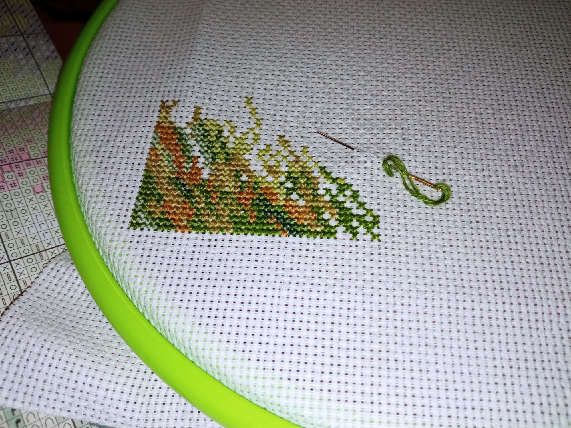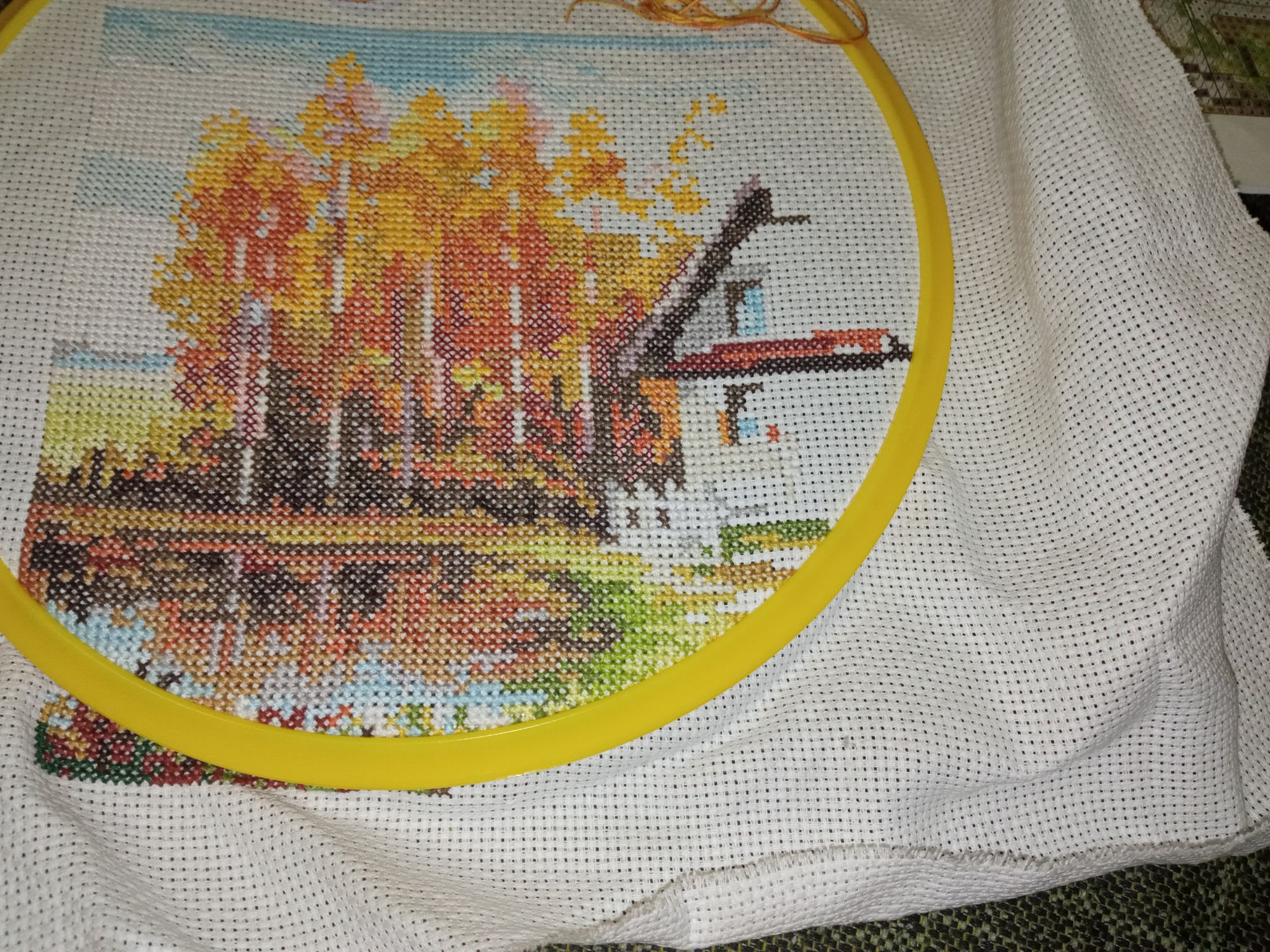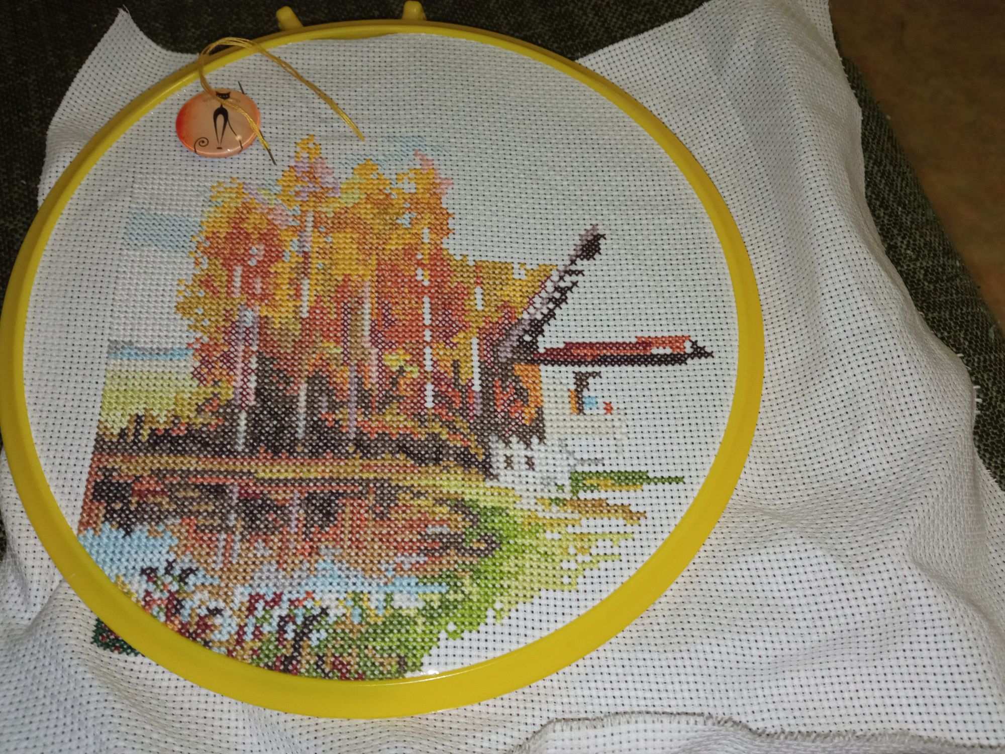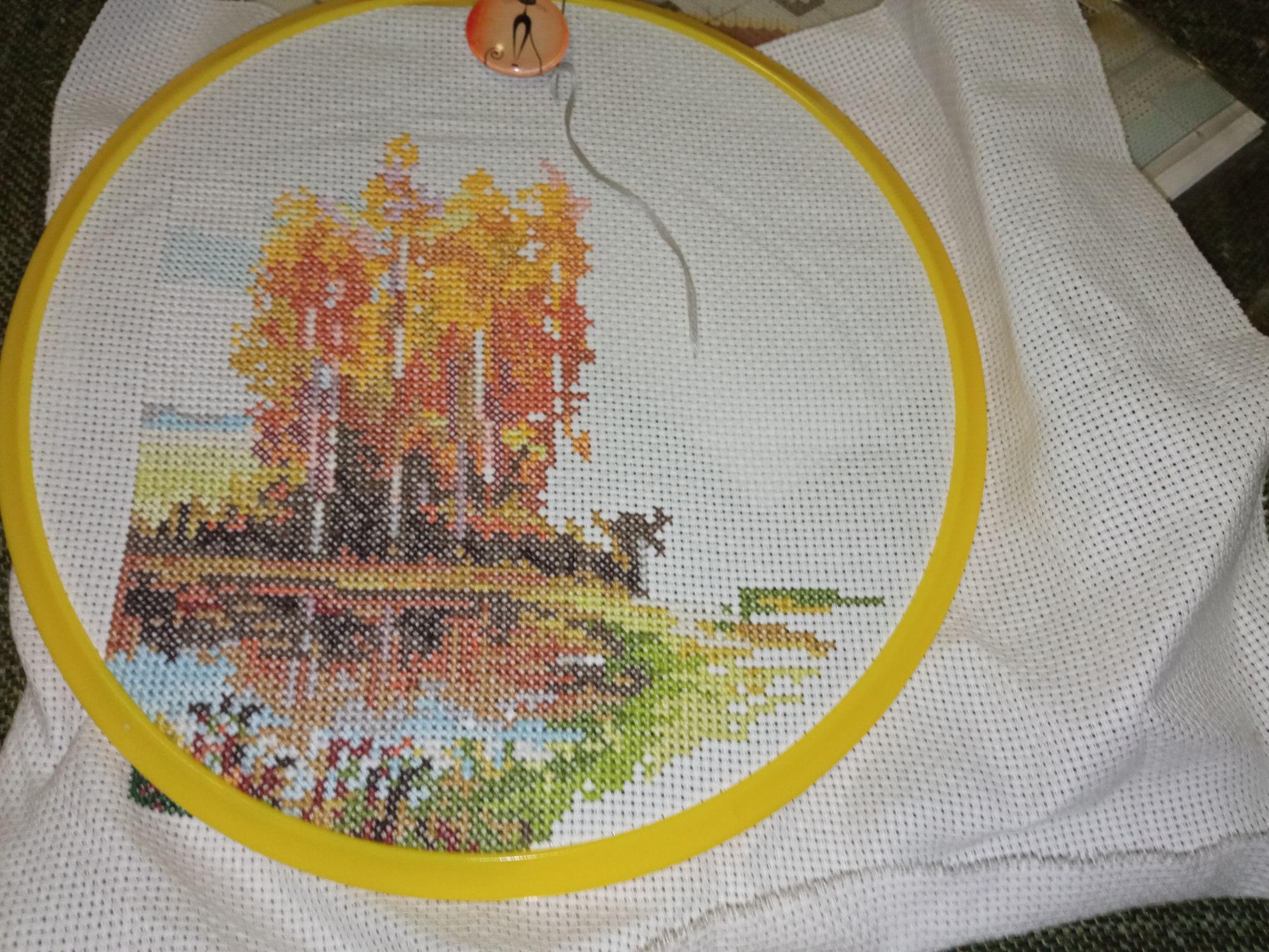 24 октября 2023 В борьбе с гадом-невышиванцем, как известно, все средства хороши! Так что стала я временной однопроцесницей. Хотя уже, чувствую, надо потихонечку-осторожненько вводить второй процесс. И такой, чтобы не отвратило - желательно что-то новенькое и настроенческое. С нафталиновым наборчиком горе-огорчение болтался он по сортировкам и придёт только завтра - а как назло, работаю и забрать до пятницы не смогу, эххх((( а так хотелось его распотрошить, посмотреть! Начинать пока не, наверное, настроение не то. Осень сейчас, а не лето. Лето у нас зимой по традиции вышивается Ну и раз уж об осени речь зашла, вот) Подбираюсь потихоньку к домику, даже немножко его затронула, чтобы был стимул. Зато наконец полностью готово отражение. Верхушки берёз вышью - и переставлю пяльца наконец, на угол и небо. До конца месяца не успею, если только шить без устали, чего позволить себе не могу... ну хотя бы угол закрыть и на домик перейти, и то хорошо будет lamina-65, Беладонна, Фенечка З и 12 других сказали спасибо Поделиться сообщением Ссылка на сообщение