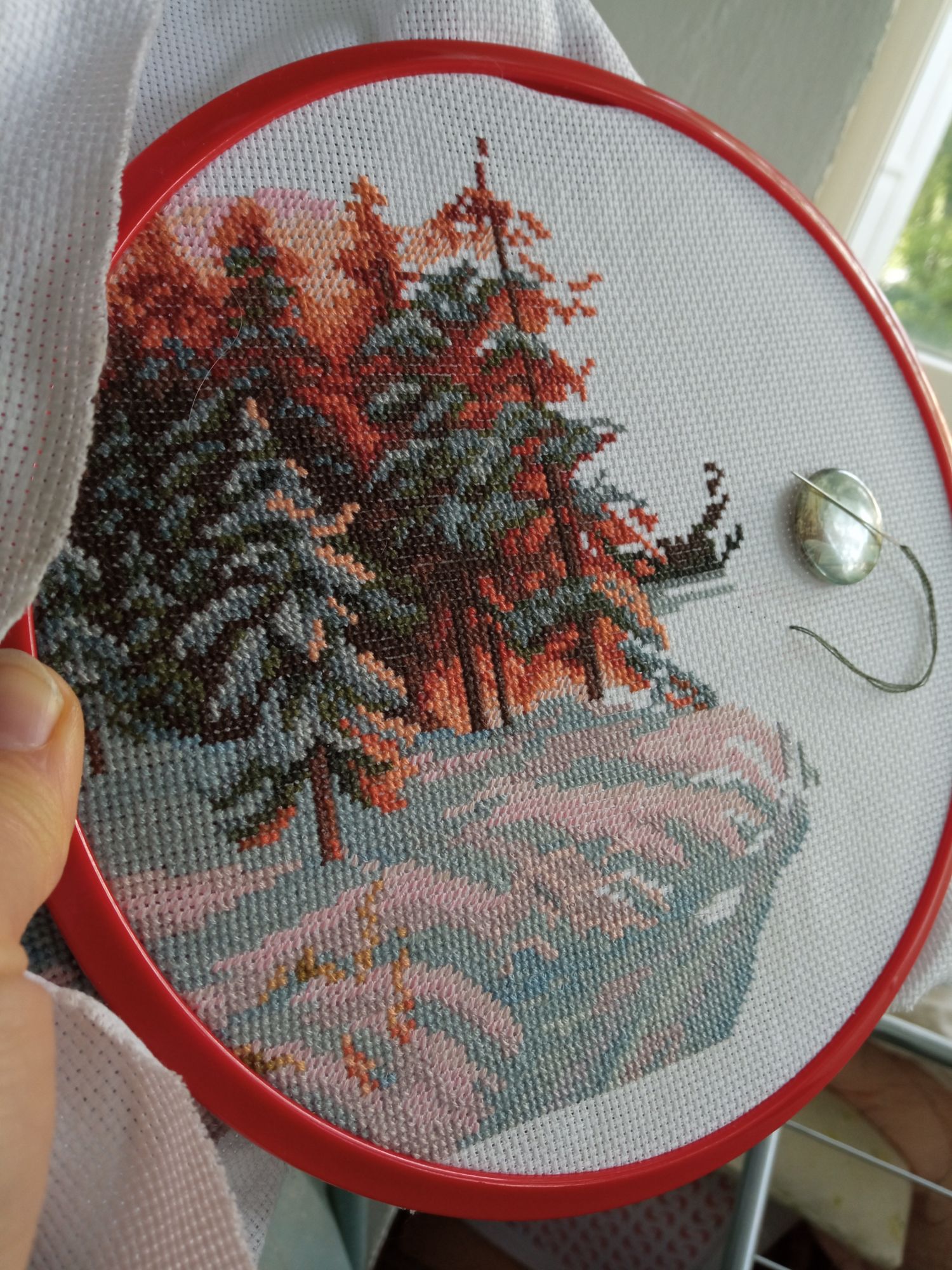 1 июня 2024 Снова выползаю, лениво так Но зато я это сделала! Цветопередача ущербная, конечно, но не знаю, когда появится возможность показать при свете дня. Потому пока что так. Сколько смотрела - не понимала, что там перед избушкой. И только когда вышила - поняла. Так это ж ёлочка! И как здорово здесь передан свет - на крыше домика (наверное, это домик лесника, что ещё будет находиться на опушке леса в отдалении от другого жилья), на ветках деревьев, на снегу. И, кстати, здесь нет ни одной белой и ни одной чёрной нитки. То, что похоже на чёрное- это такой тëмно-серо-угольный цвет. Вместо белого - светло-розовые и светло-серые оттенки. И активно в работу пошли бленды, уже 13 штук. Благо, не имею проблем с цветовосприятием и легко их различаю. 28.05.2024 в 15:16, makalicha1970 сказал(а): Я иногда успеваю такие места скотчем проклеить, если чувствую, что будут затираться. Но не всегдауспеваю, а иногда ленюсь. Тут, если что, есть отдельная схема для Бэка И значки там хорошо видны. Фрагмент этот наконец позади, но если потребуется, вот такой лайфхак Сибирская Кошка, Путешественница, Фенечка З и 8 других сказали спасибо Поделиться сообщением Ссылка на сообщение