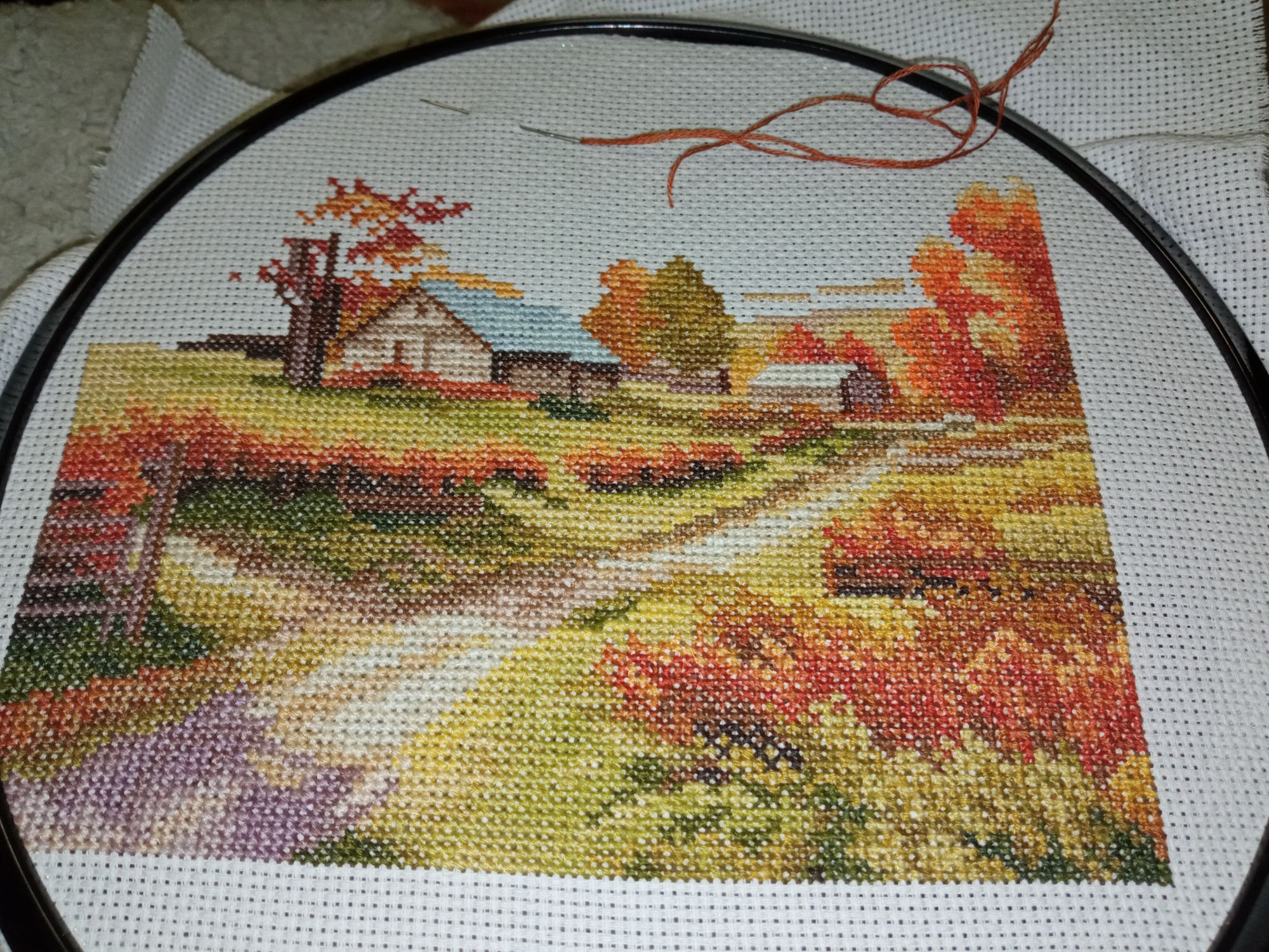 21 ноября 2024 51 процЭнт имеется, даже почти 52 Когда разрозненные группки крестиков наконец соединились воедино, процесс не пошёл - полетел. Домик осталось покрыть крышей, но это позже... утро вечера мудренее, как известно! И не раз возвращаюсь к мысли - насколько вроде бы чем-то схожи сюжеты, и насколько они отличаются. И в Дороге к дому, и здесь - яркая красочная осень, дорога, строения. Но там сумерки - и присутствует какая-то атмосферность, даже тревожность в некоторой мере. Чем-то напоминает ощущения от тёмных деревьев в Зимушке и того, что за ними. Вот смотрю на тот пейзаж и не чувствую спокойствия - при том, что его обожаю. Здесь же дневной свет, солнце и полное умиротворение Ну и приоткрою секрет, ещё одна осень (возможно и вероятно) на очереди. Вот такая) Такая, как я особенно люблю - с ноткой лирической грусти. Это схема Ирины Даргель, но на маркетплейсах можно купить её в полностью укомплектованном виде. Что я и сделала) месяца три, наверное, смотрела и всё же приобрела. Из этой серии есть зима и лето, весны вроде нет ни в виде схемы, ни в наборе. Пока от старта останавливает только размер - побольше, чем кружочки от Мира вышивки, это будет надолго. А вот какую-нибудь весну, настоящую, тоже хотелось бы) вот только нормальную, а не так, чтобы не понятно было, весна это или лето. К сожалению, таких разработок кот наплакал( И снова к вопросу о планах. Вот если я бы им следовала - то не было бы в этом году многих работ. Не было бы ни домиков от Панны, ни Весеннего и Осеннего настроения, ни кружочка от Мира вышивки, ни осеннего пейзажа от РТО, вышиваемых и уже вышитых по велению души. А что было бы? Да, невышиванец, скорее всего))) ибо из-под палки... ну, сами понимаете relax_cross_stitch, Tatiana Ch., Кисуля и 14 других сказали спасибо Поделиться сообщением Ссылка на сообщение