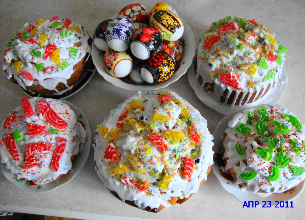 Я вот тоже отстрелялась вчера: настряпали мы с мамой, потом сходила в церковь освятила.