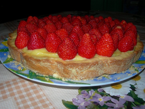 Девчонки, сегодня пекла клубничный пирог :rolleyes: просто объедение! вот рецепт: тесто: 200 г муки, 140 г сливочного масла, 70 г сахара, 1 яйцо, соль, сода на кончике ножа. для украшения: клубника. крем заварной: 4 яйца, 1 стакан сахара, 2 столовых ложки муки, 2 стакана молока, ванилин.