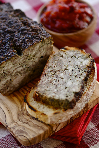 "Нам понадобится (тут я даю оригинал, я делала больше): 700-800 г нежирной свинины, кусок из лопатки, плеча или окорока подойдет; 650-750 г куриной печени, или половина куриной и половина телячьей; 1-2 шалота; небольшой пучок петрушки; 6 длинных тонких полосок бекона - около 150 г, наверное; 3 ч.л. крупной соли, 2 ч.л. сухого молотого имбиря, 1/4 ч.л. молотой корицы, 3 ч.л. свежемолотого черного перца, 3 ст.л. коньяка или бренди. Продолговатая форма для выпечки (я использовал хлебную буханочную, застеленную фольгой, но керамическая была бы лучше). Выход - примерно полтора кило.