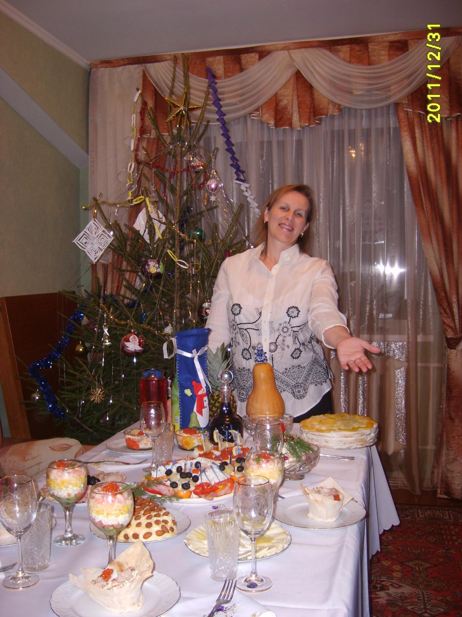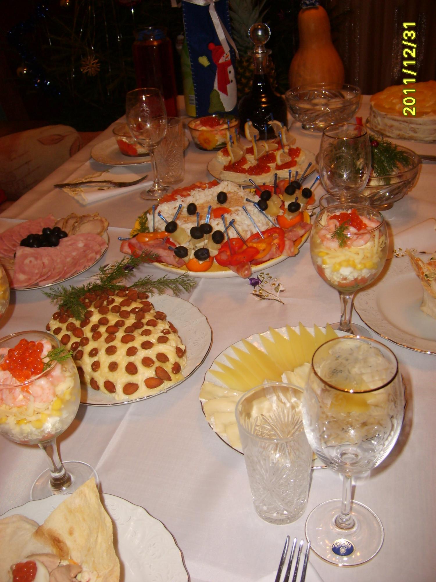 Ну и конечно же оливье и селедка под шубой - иначе это не праздник. Плюс еще два-три салата, холодец, буженину, рыбу, жюльен. День провозишься, зато потом дня три можно ничего не делать.