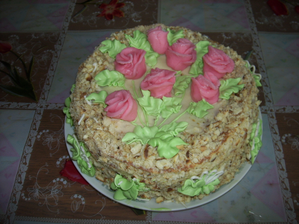 Тортик делается очень просто: берете упаковку слоеного бездрожжевого теста, выпекаете коржи нужного размера(3 шт). Готовится начинка: сыр, ветчина - на крупную терку. Добавить по-вкусу чеснок(можно в майонез,так даже и лучше) и зелень. Выпеченные коржы промаза каждый майонезом, проложить начинкой,смешанной с майонезом. Верхний слой покрыть оставшейся начинкой и крошкой от коржей. Украшаем по своему вкусу. У меня было вот так:post-12785-1355480905_thumb.jpg