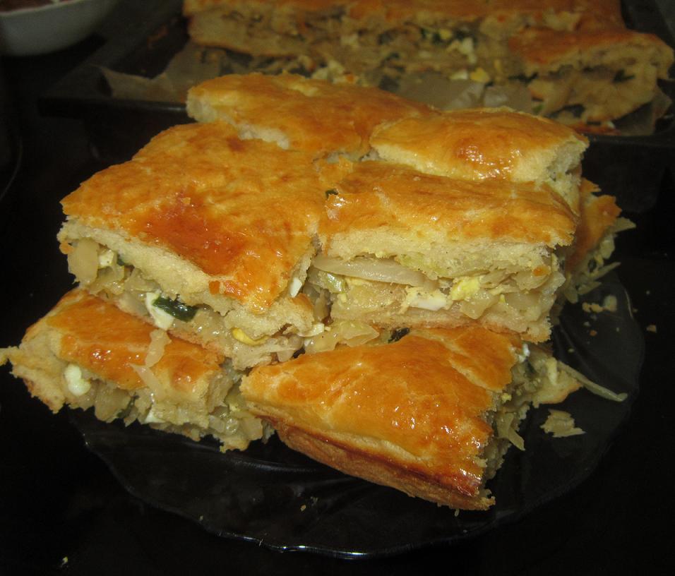 В общем, это все. Основная часть времени уходит на приготовление начинки. Надо сказать, что я поленилась сильно мелко резать (лучше повышиваю). Если капуста нарезана слишком крупно, она не успеет приготовиться, тесто уже испечется, а начинка будет сырой.