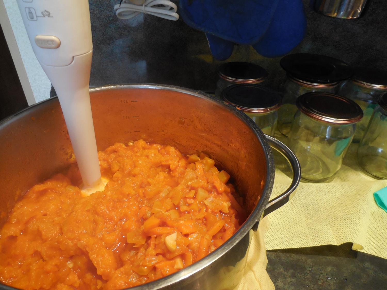 -Затем( прям в кастрюле) растолочь блендером, Еще раз вскипятить. Получилась такая густенькая, что мне очень понравилось.