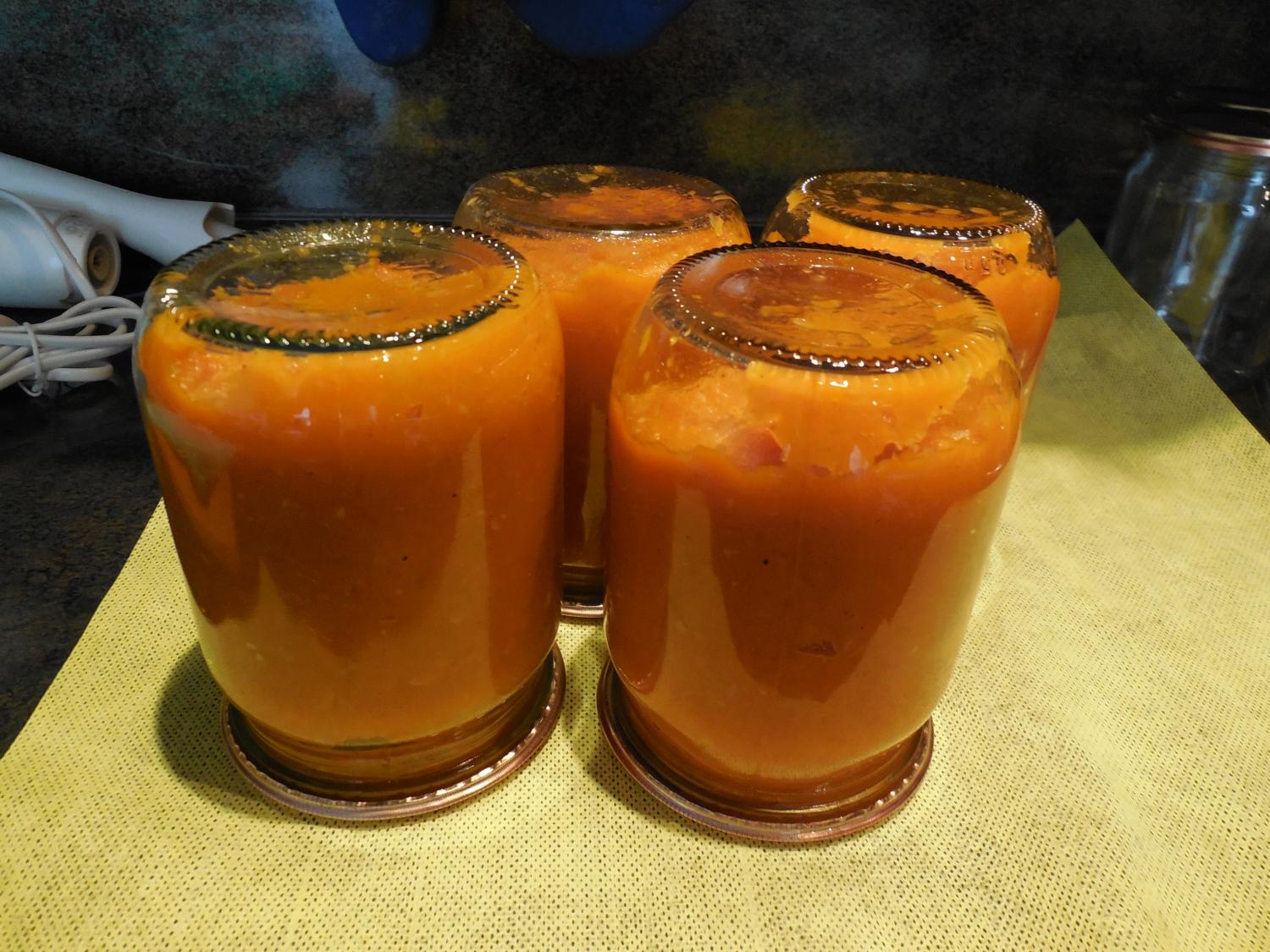 Разложить в Стерилизованные банки, закатать и под одеялко до остывания.