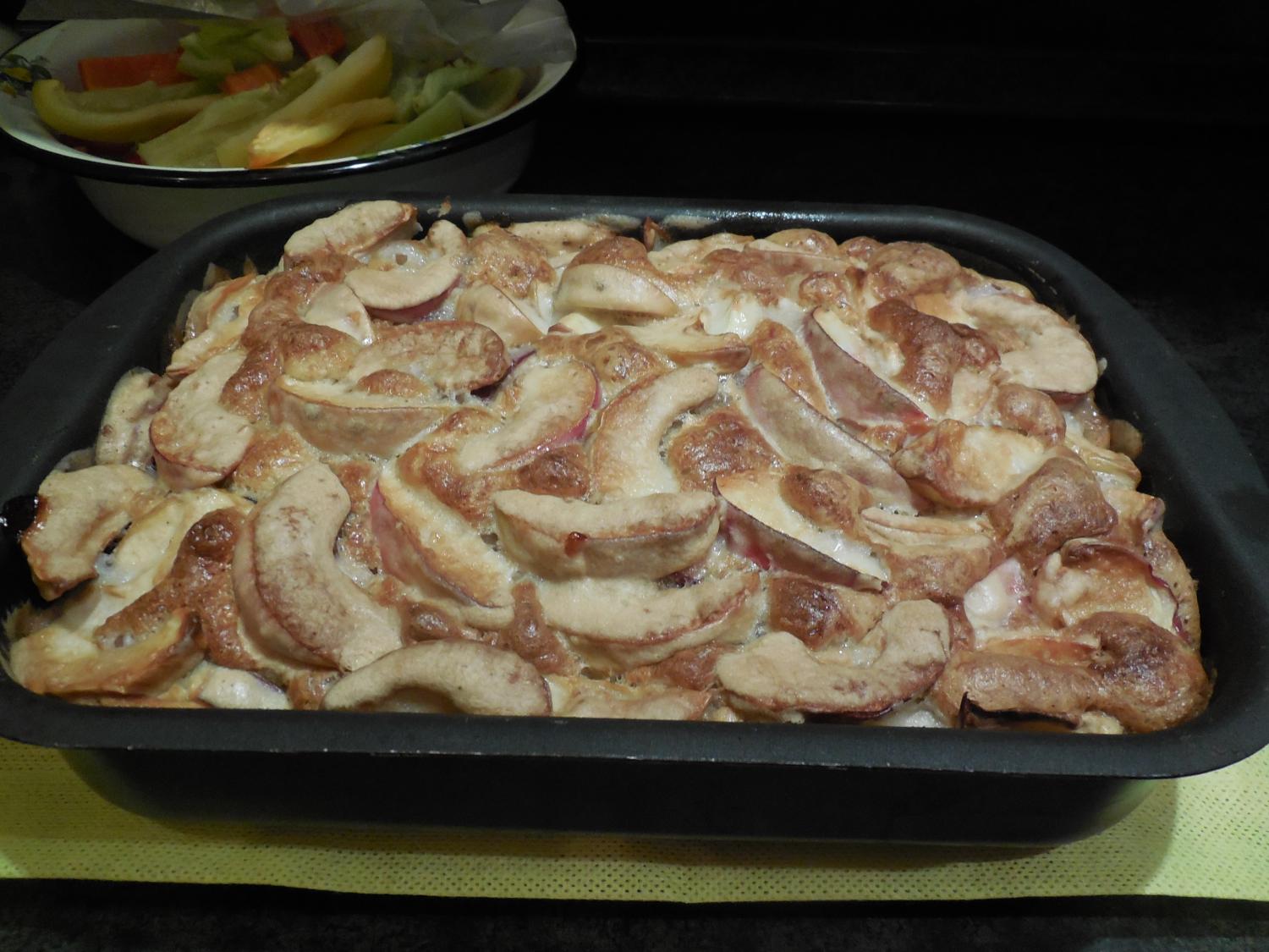 Просто модернизировала рецепт Шарлотки. Раньше я делала так: на дно противня укладывала ну слой яблок только.