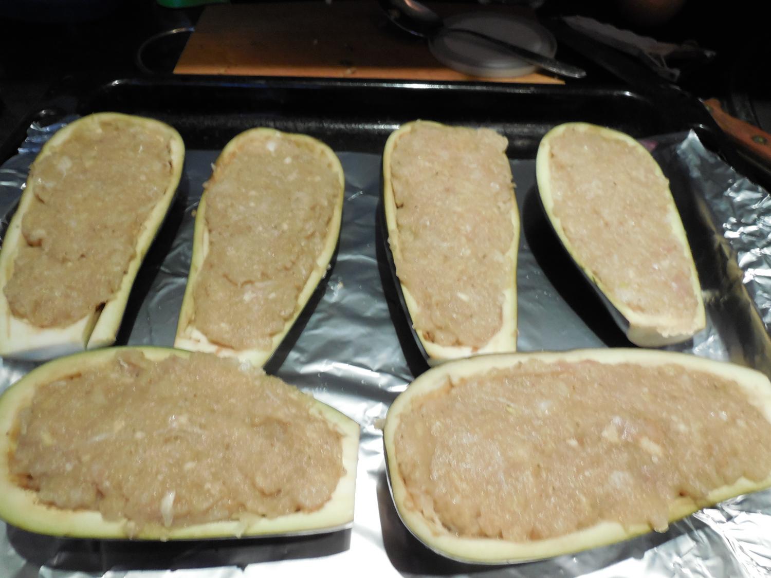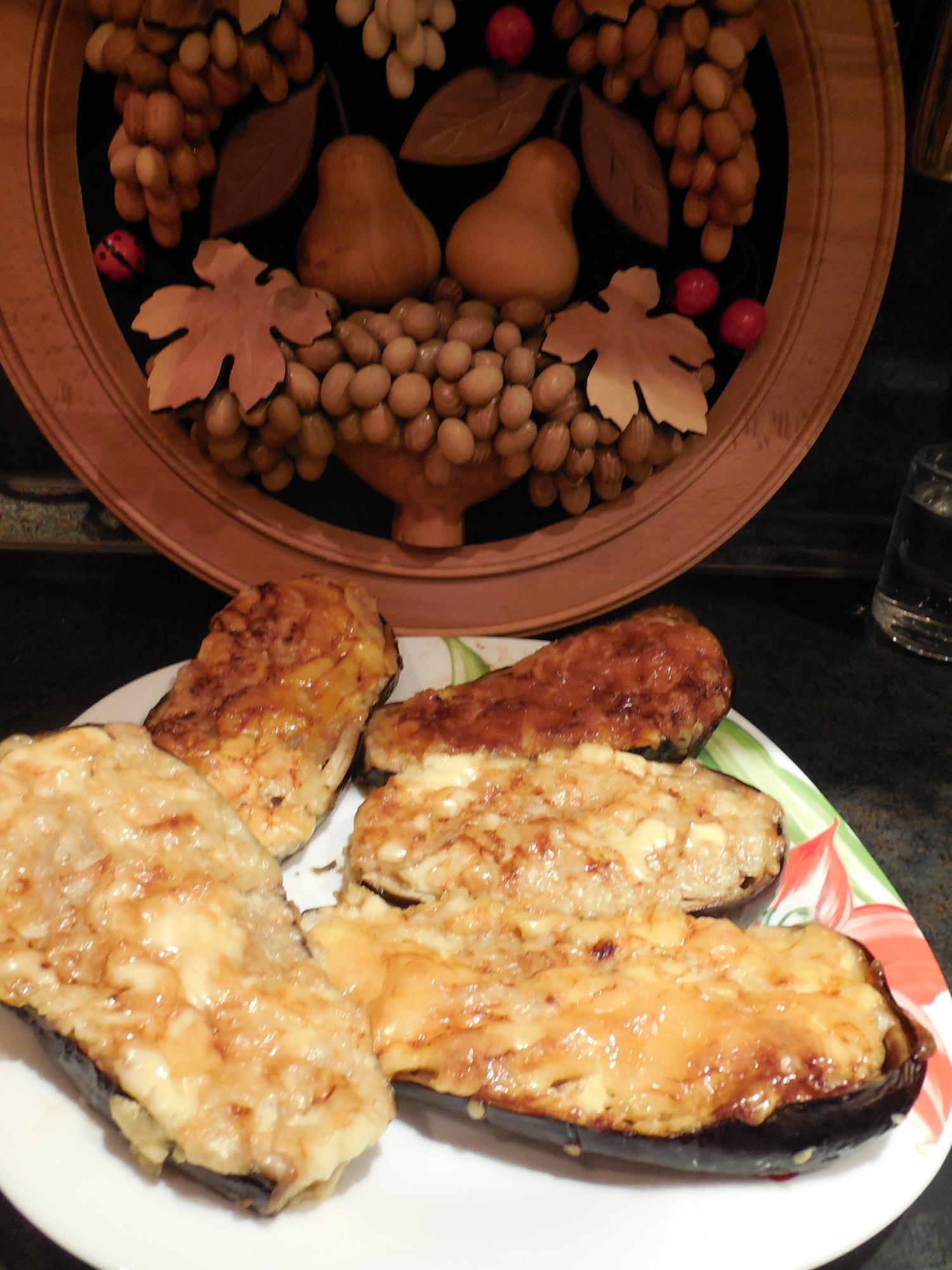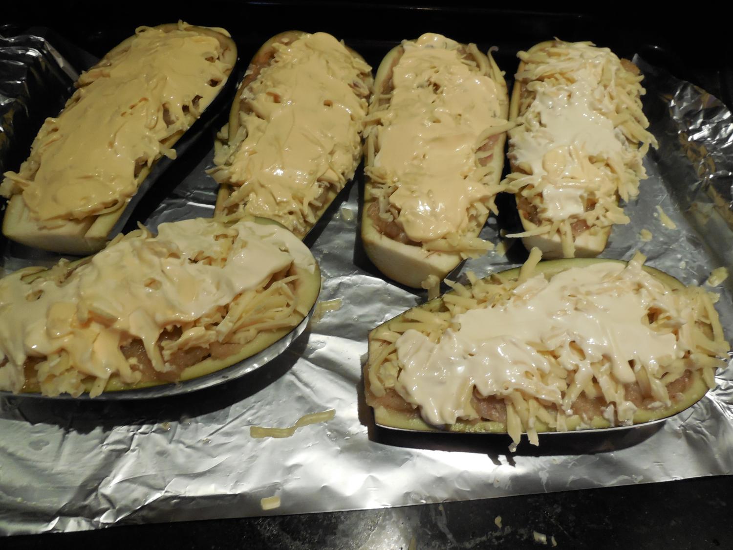 Все. Начиняем баклажаны, сверху сыр, мацаем майонезом.