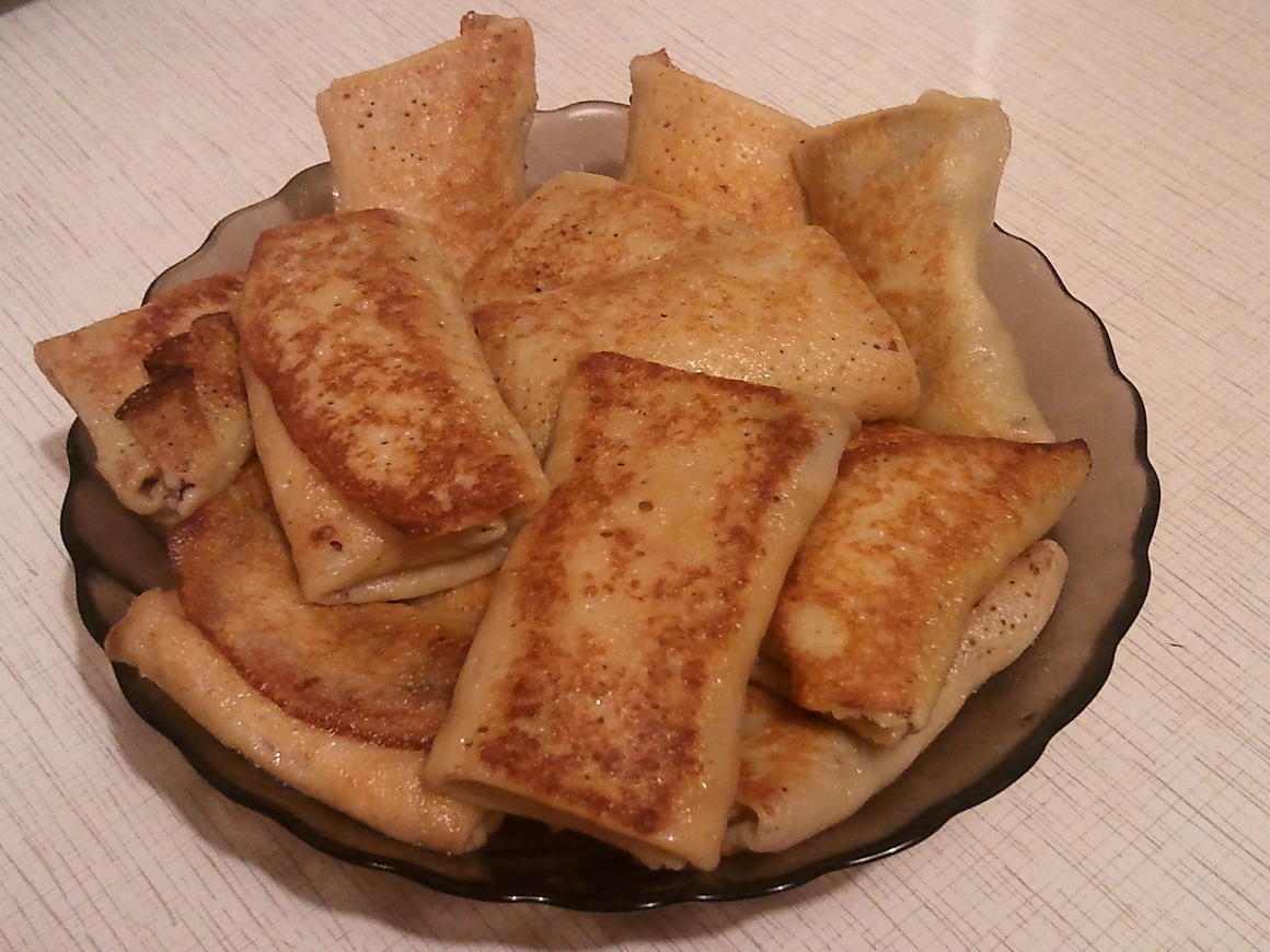 Ого нашлепала,а фаршировала чем?.....а сегодня крахмальные пекла:0,5 л молока+5 яиц+1,2ч.л соли+ ст.ложка сахара+200 гр. крахмала.....получаются как кружева,вот только не сфотографировала.....
