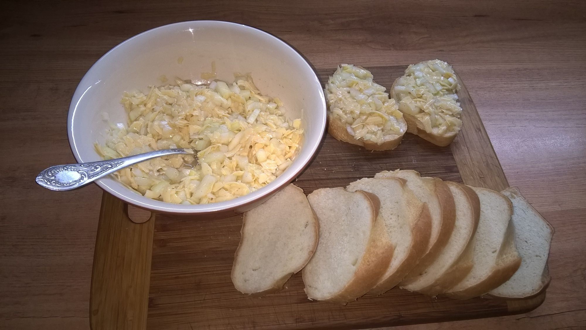 Трем сыр на терке, режем кубиками лук, добавляем яйца, соль, перец. Намазываем на батон и переворачиваем начинкой вниз на разогретую с подс. маслом сковороду. WP_20160927_17_23_27_Pro.jpg WP_20160927_17_45_35_Pro.jpg Жарим с одной стороны. Приятного аппетита.